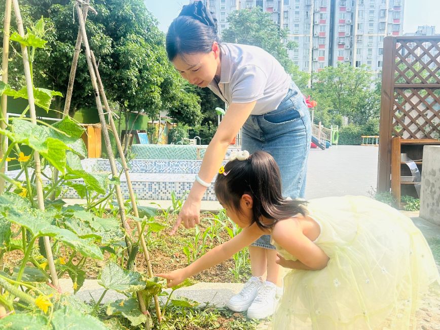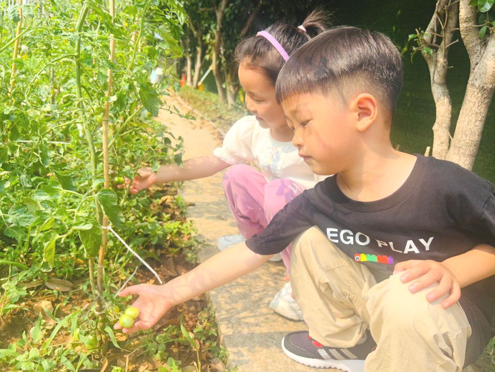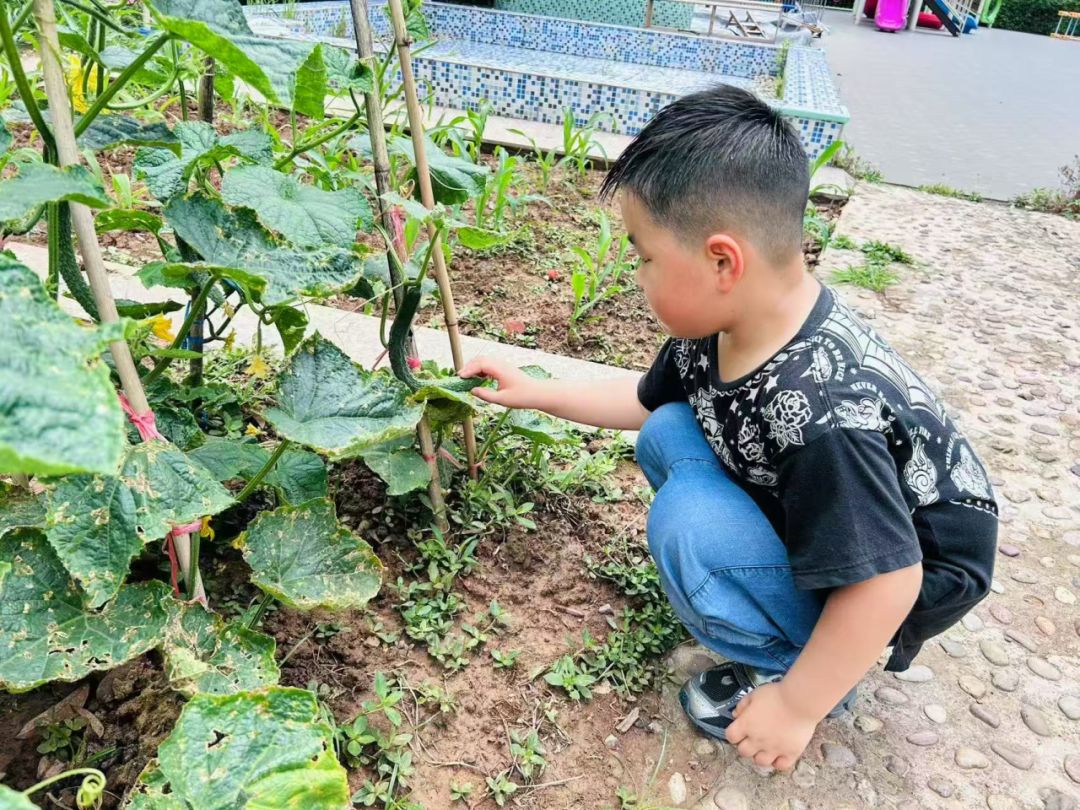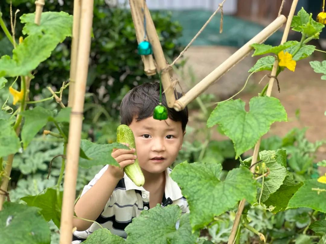 5月21日小满时节,雨花台区曙嘉幼儿园的种植区里藏着神奇的小秘密!老师带着小朋友们走进绿意盎然的小天地,开启了一场小满节气下的自然探索之旅。他们轻轻伸手,小心翼翼地触摸着柔软的菜叶,感受叶片的纹路。番茄藤上挂着青绿色的小果子,像是害羞的小精灵;黄瓜藤间藏着毛茸茸的小黄瓜,摸起来刺刺的。老师耐心地讲解着,孩子们一边听一边惊叹,原来蔬菜从种子到果实要经历这么多奇妙的变化!在这个充满生机的节气里,孩子们不仅认识了蔬菜,更在触摸与观察中,与大自然来了一次亲密接触。
