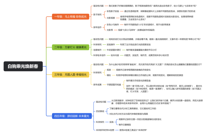 本次“白驹乘光焕新春”学程周,是科学与年味的完美邂逅,是探索与成长的温暖篇章,也是多学科融合的探索盛宴。从一年级的光影魔法到四五年级的时空漫游,以阶梯式的探究任务、沉浸式的实践体验,让科学知识变得可触摸、可感知、可创造;语文的表达与梳理、数学的测量与精度、美术的创意与造型、地理的自然规律、历史的文化传承、信息技术的工具助力,让小飞侠们学会用科学的眼光看待世界,用创意的方式表达情感,让成长更加全面。