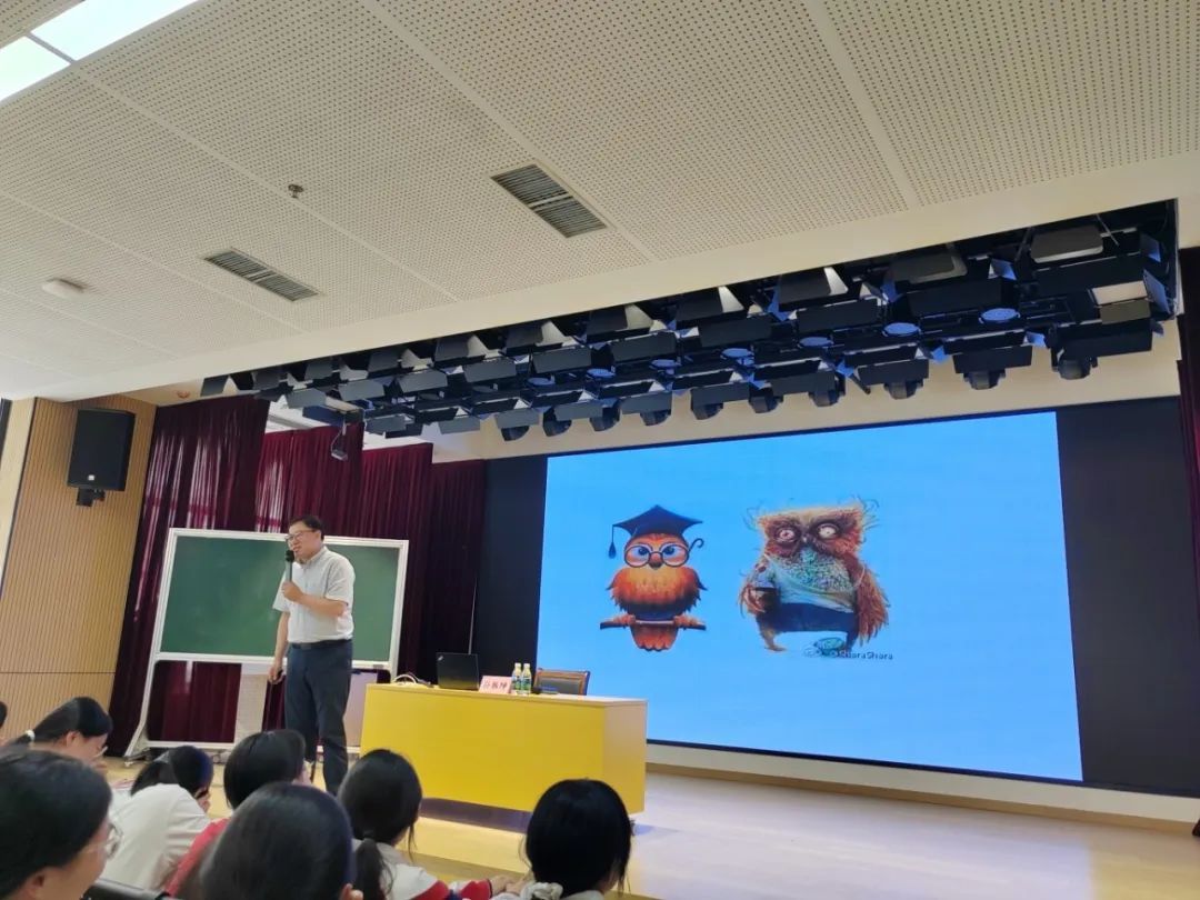 孙振坤老师以“笔墨生花,华章绽放”为主题,从一对父子的生活趣事娓娓道来。他精心设计语言情境,邀请学生登台即兴表演“宝宝爱妈妈”的生活场景,通过不同表达方式的对比演绎,让同学们直观感受文字表达的多样魅力。讲座中,孙老师从汉字字源入手,将中国传统文化与现代写作教学完美融合,既展现了汉字的文化底蕴,又揭示了表达方式的内在规律。