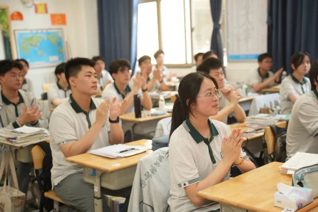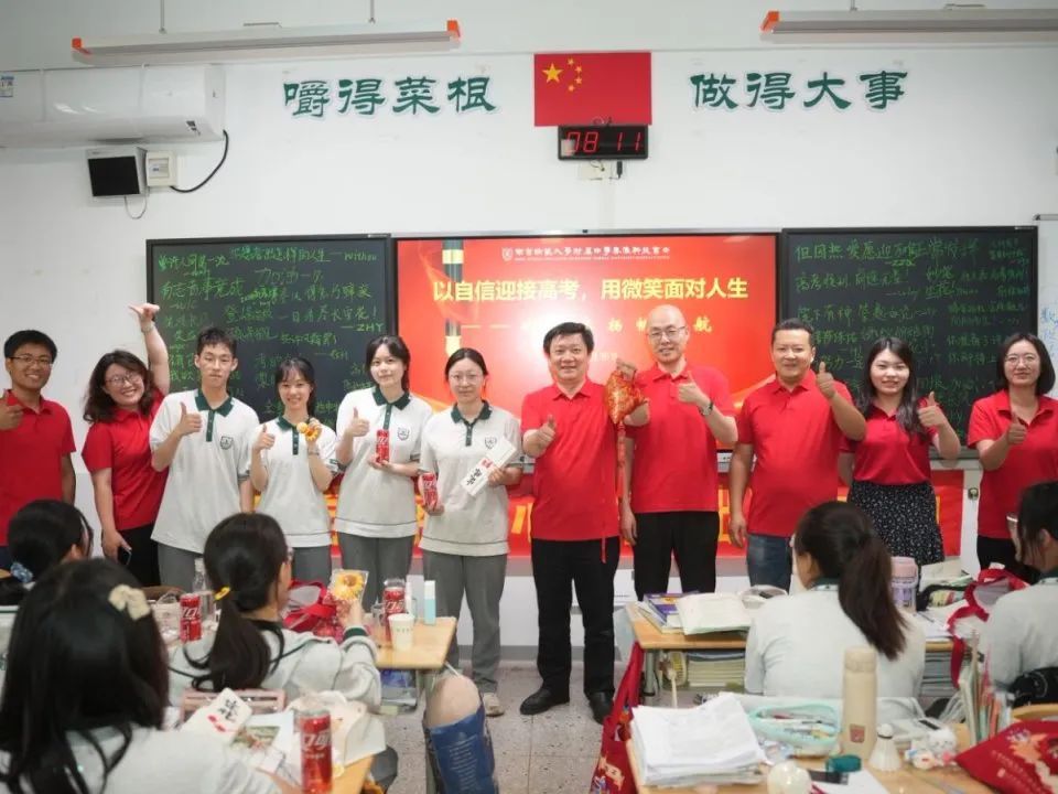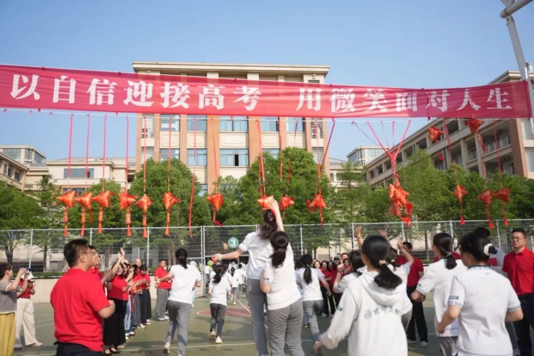 校领导与高三教师夹道祝福,将热烈的掌声与欢呼留给即将奔赴考场的高三勇士。