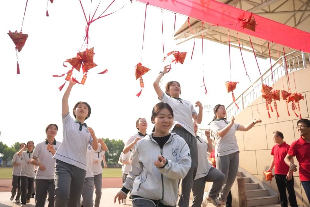 高三学子纷纷高高跃起,触碰高挂的粽子,一“顶”高粽、一定高中!