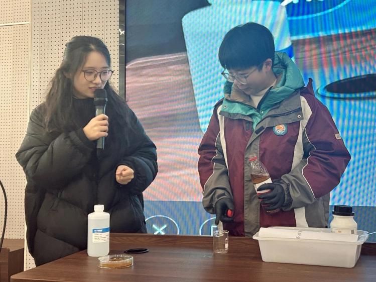 茶水中加入硝酸铁、草酸等物质,因化学物质间络合、还原等反应,上演“三色魔法” 。“百变汽水”实验,通过不同溶液混合发生的化学反应,模拟饮品转变,揭示反应对物质性质的影响。“水点蜡烛”实验,利用蜡烛中三氧化铬和洗瓶中乙醇的氧化还原反应,不仅呈现溶液变色,还关联到酒驾检测应用。 “大炮反应” 中,过氧化氢溶液与酒精混合点火,加入高锰酸钾后反应生成氧气,使酒精燃烧更旺,展示化学能转化。各种金属盐的焰色反应宛如 “化学极光” ,不同金属离子呈现独特颜色,激发学生对微观世界的探索热情。此次活动让学生将抽象化学知识具象化,提升了实践能力,点燃了他们对化学的热爱,营造出浓厚的科学探索氛围。