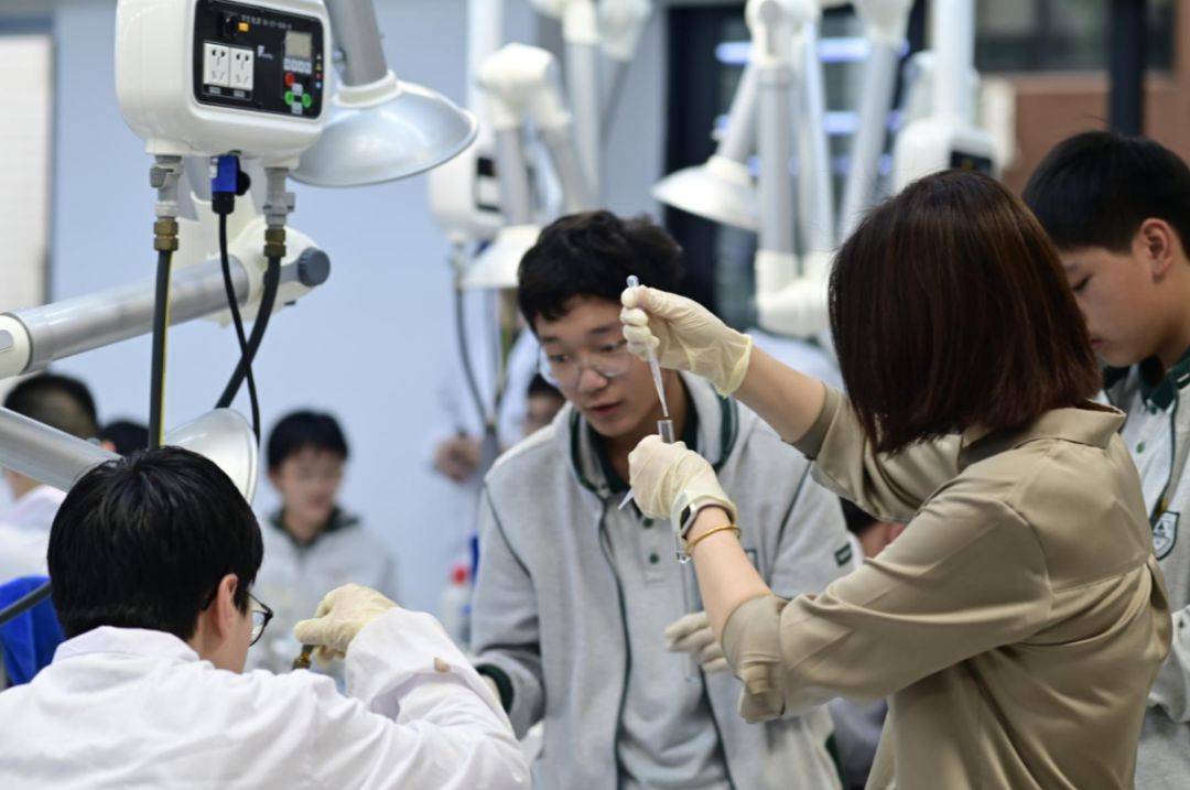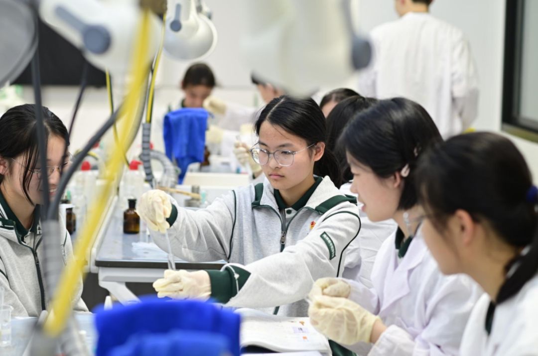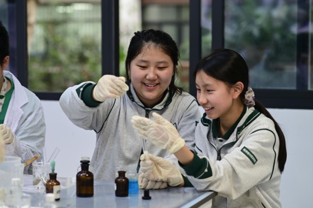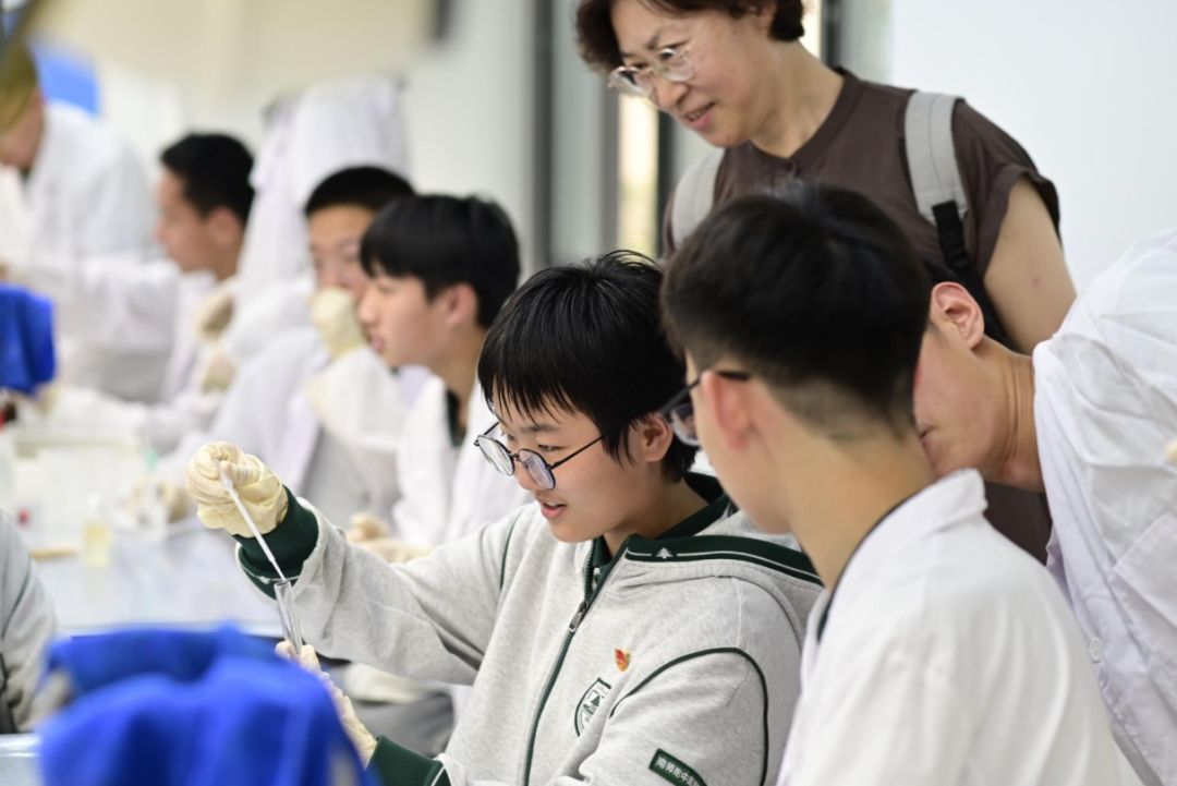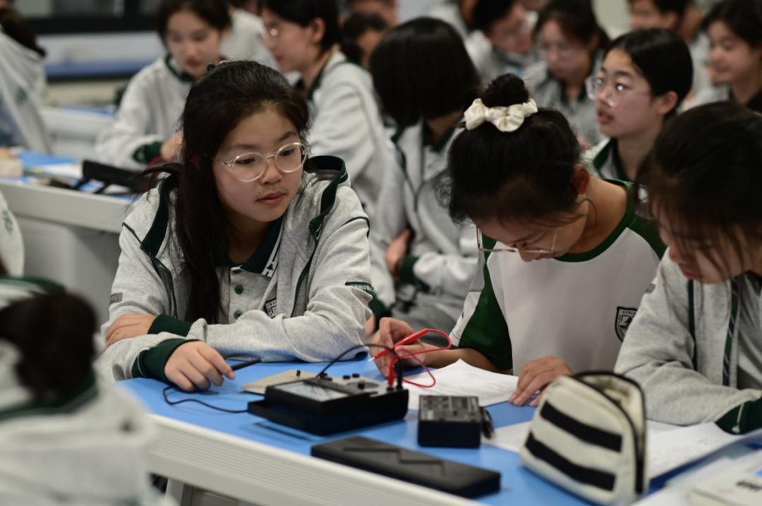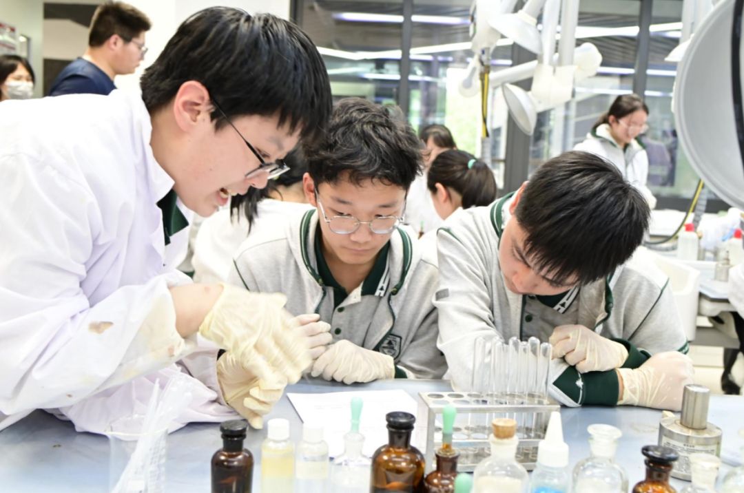 作为一所注重培养学生实践能力和创新精神的学校,南师附中为同学们提供了丰富的实验课程。在研学活动中,同学们有幸亲身体验了一些有趣的实验,感受科学的魅力。在物理实验室,同学们参与了 “使用多用电表” 实验。通过亲自动手操作多用电表,学习测量电压、电流和电阻的方法。在化学实验室,一场奇妙的化学反应实验让同学们大开眼界。在学长学姐的带领下,同学们参与了葡萄糖与新制氢氧化铜反应和葡萄糖的银镜反应,成功合成了产物。在实验过程中,同学们积极思考、相互协作,遇到问题时主动向老师请教,展现出了强烈的求知欲和探索精神。