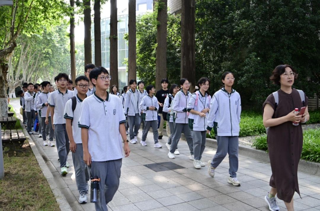 随后在老师们的带领下,同学们开始了校园参观之旅。首先映入眼帘的是一条悠长的大道,道路两旁高大的梧桐树遮天蔽日,仿佛在诉说着学校的悠久历史。沿着大道前行,依次参观了学校的教学楼、实验室、体育场、图书馆、南京鲁迅纪念馆、校史馆等标志性建筑。漫步在校园中,随处可见的文化景观和充满创意的校园布置,都让同学们感受到了南师附中独特的文化魅力。无论是校园里的雕塑、壁画,还是宣传栏里的优秀学生作品,都在潜移默化地影响着同学们的审美和价值观。