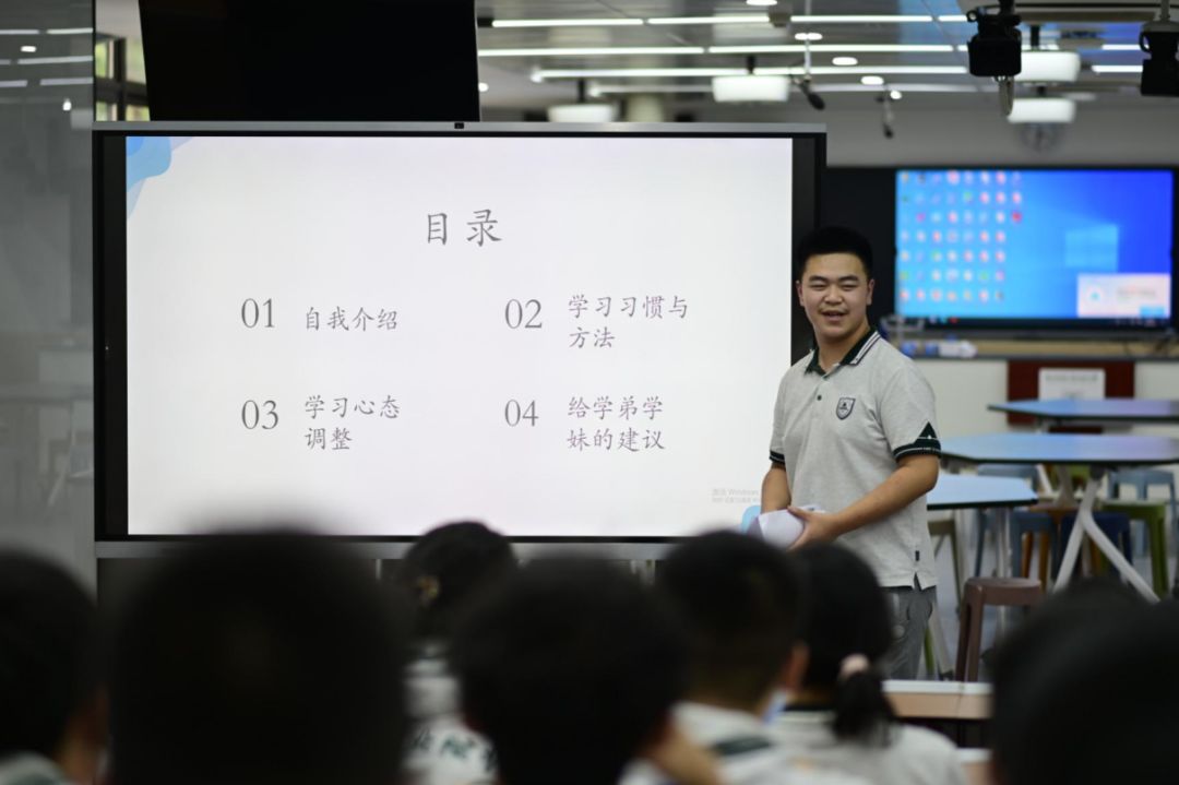 在研学活动中有幸邀请到了三位优秀的南师附中学长,为大家分享他们的学习经验和成长故事。学长学姐们结合自身的经历,毫无保留地将学习方法、时间管理技巧以及应对挑战的心态等宝贵经验传授给同学们。学长们强调了制定合理学习计划的重要性,每天按照计划有条不紊地完成学习任务,不仅能够提高学习效率,还能让自己在面对繁重的学业时保持从容;还分享了自己在参加学科竞赛过程中的点点滴滴,鼓励同学们积极参与各类学科活动,拓展自己的知识面和思维能力。