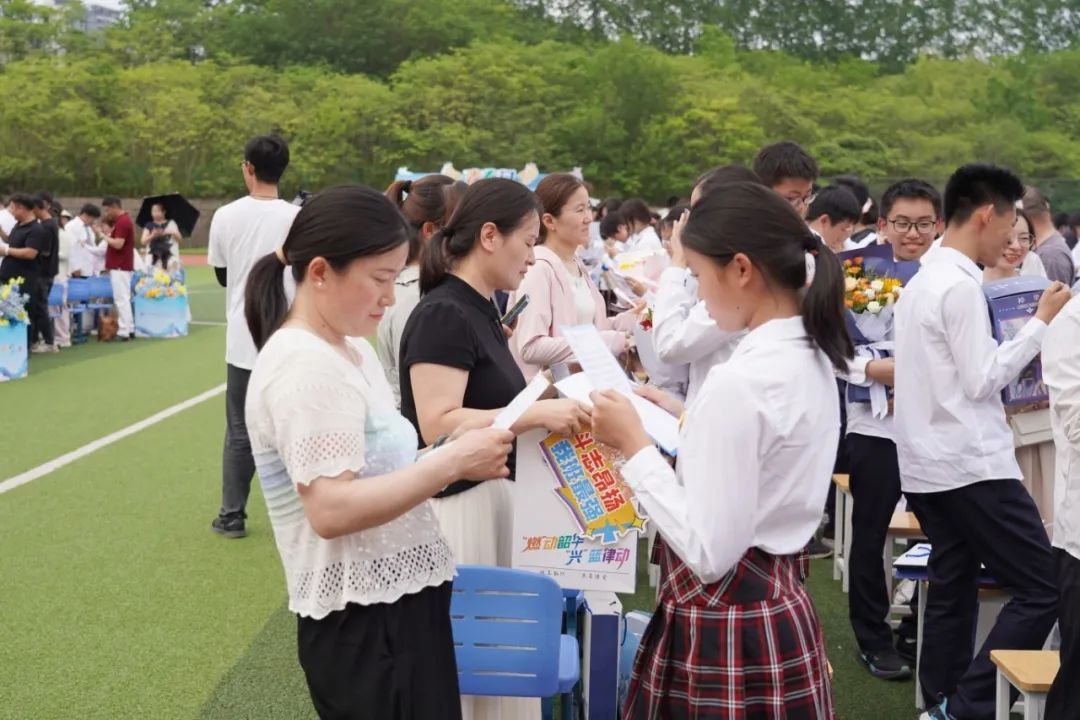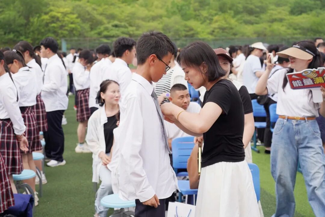 在佩戴青春徽章环节,家长亲手为孩子戴上徽章,并互相交换信件。