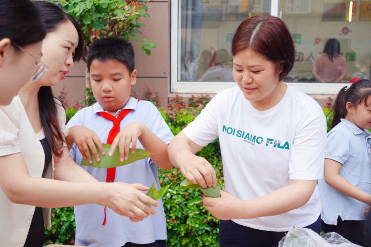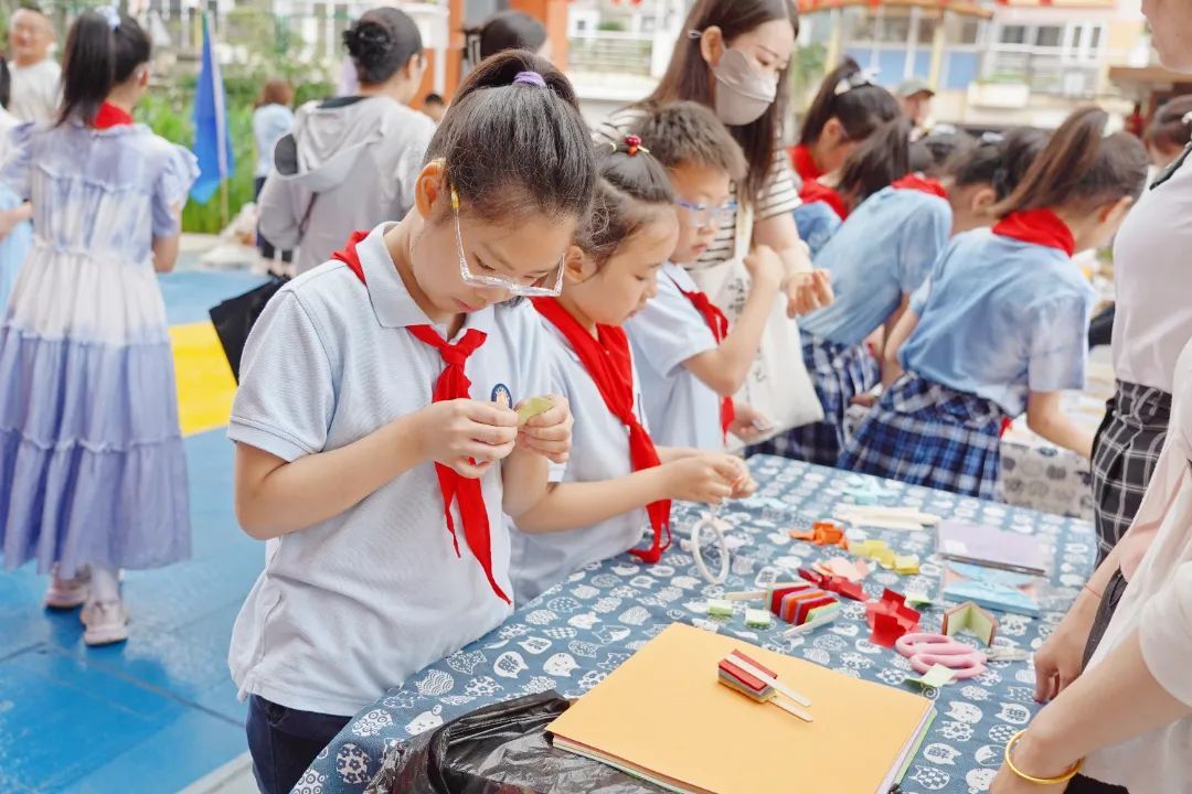 活动中,信息科技组的同学们将科学、美术与信息技术相结合:AI技术实时记录创作过程,大屏幕同步展示扎染围巾、十二生肖布偶等作品;同学们还剪辑了校门口家长包粽子、缝香囊的劳动场景,彰显了“生活即课堂”的理念与跨学科融合的无限创意。