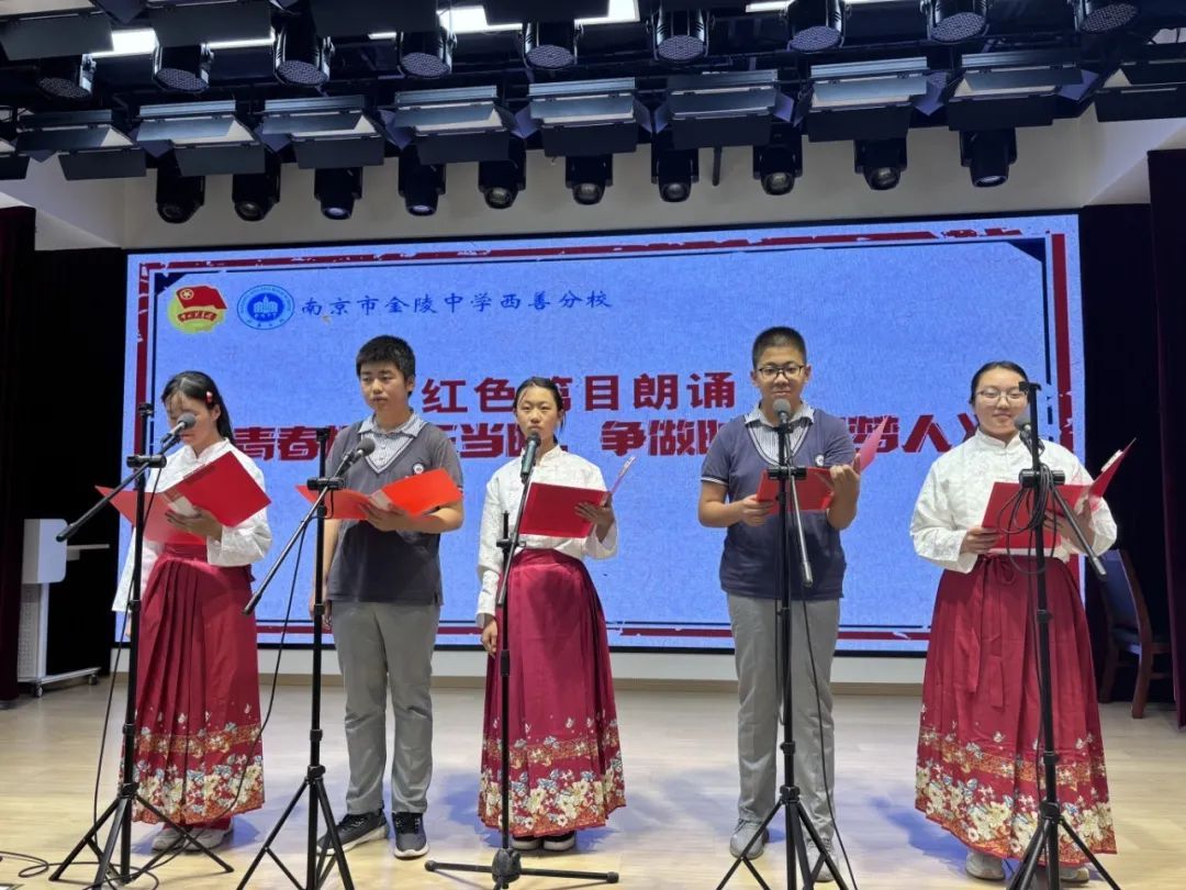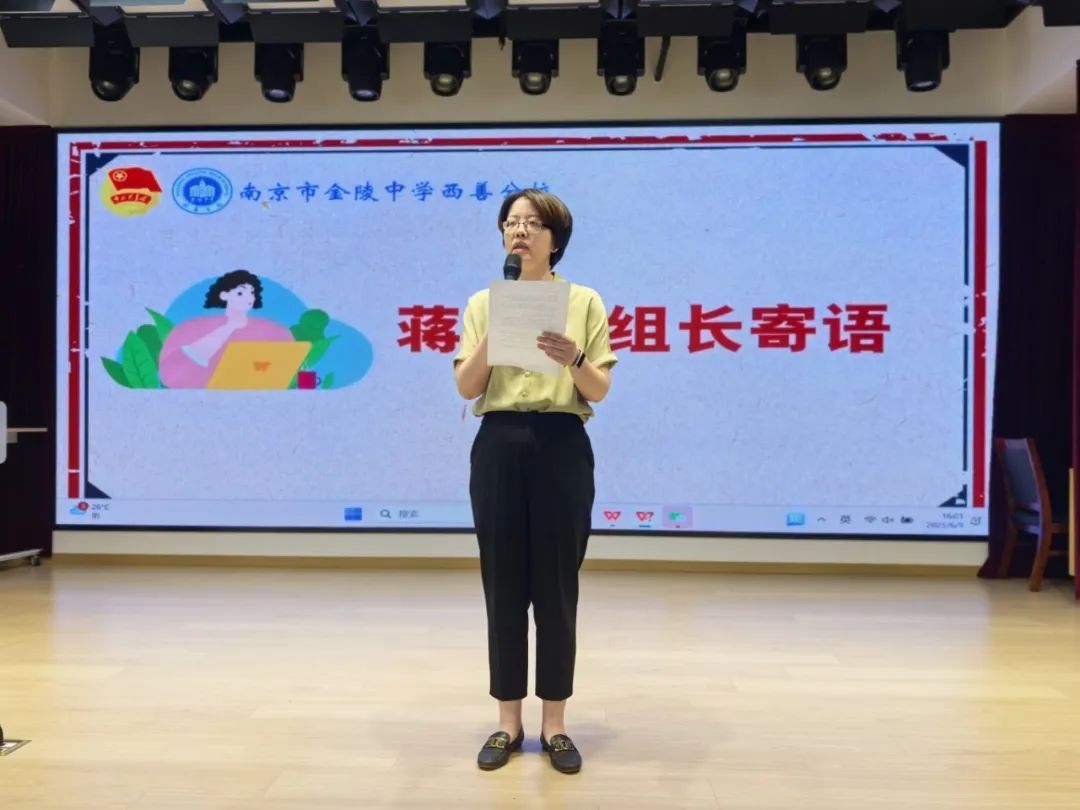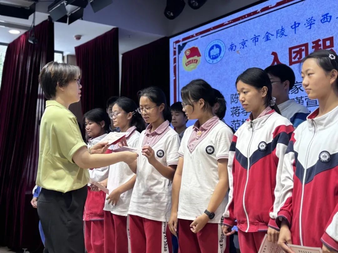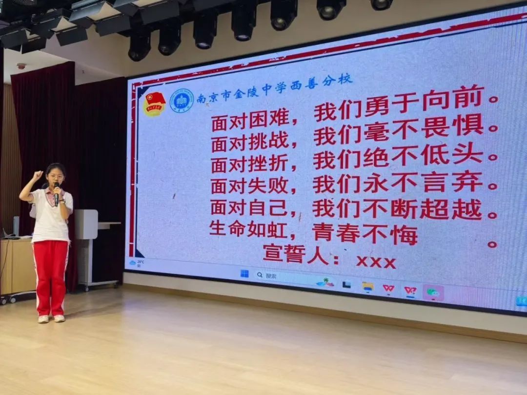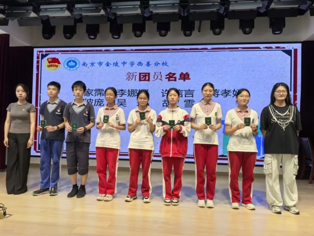 2025年6月9日下午,南京市金陵中学西善分校隆重举行“十四而志,拾光逐梦”2023级学生青春仪式暨入团仪式。活动由徐歆然、赵瑾萱两位同学主持,林祥副校长、团委王雅卿书记、初二年级蒋安邦组长、党员及团员教师代表、家长代表、初二年级班主任及全体学生齐聚一堂,共同见证这一青春盛典。