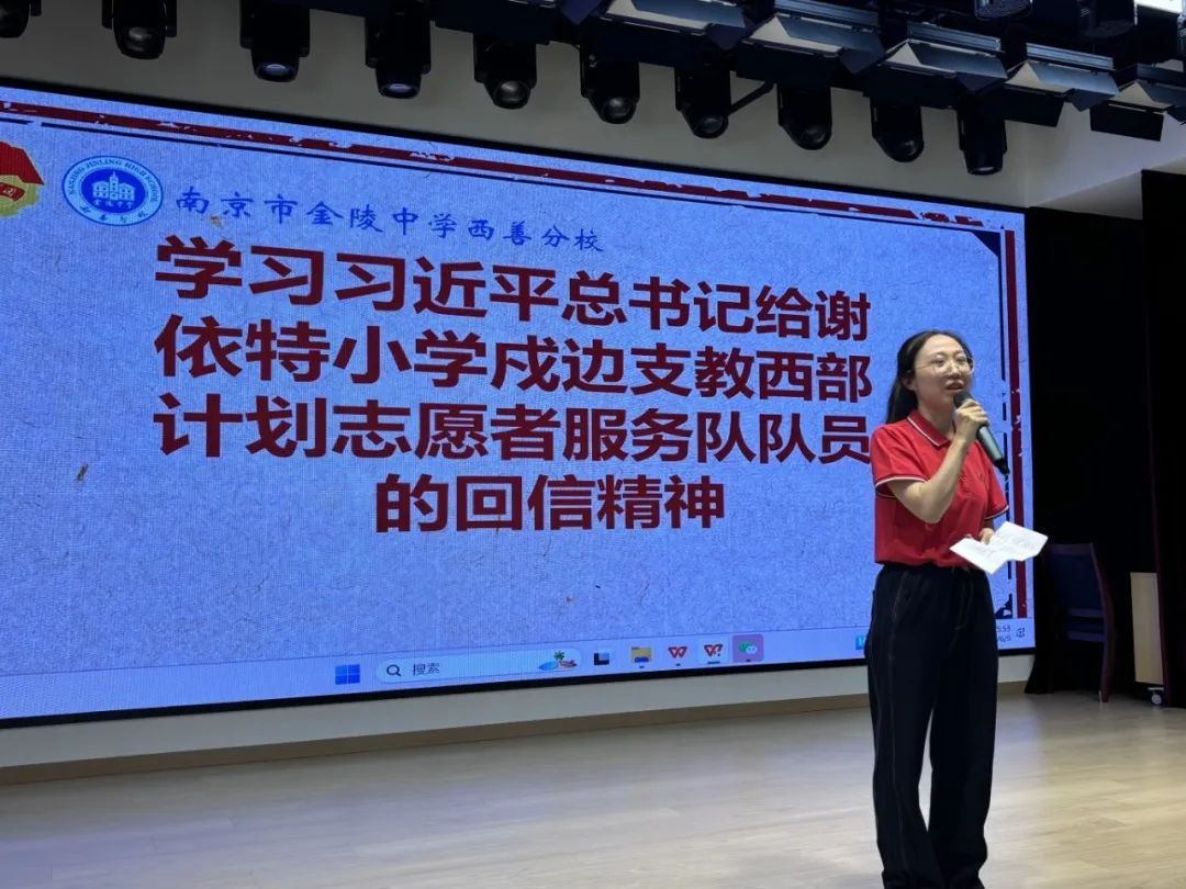 王雅卿老师带领全体师生学习了习近平总书记给谢依特小学戍边支教西部计划志愿者服务队队员的回信,强调“接过历史接力棒,在新时代拼搏奋进”的使命担当。百年团史的光辉历程与当代青年的责任担当在这一刻交汇,照亮了前行的方向。