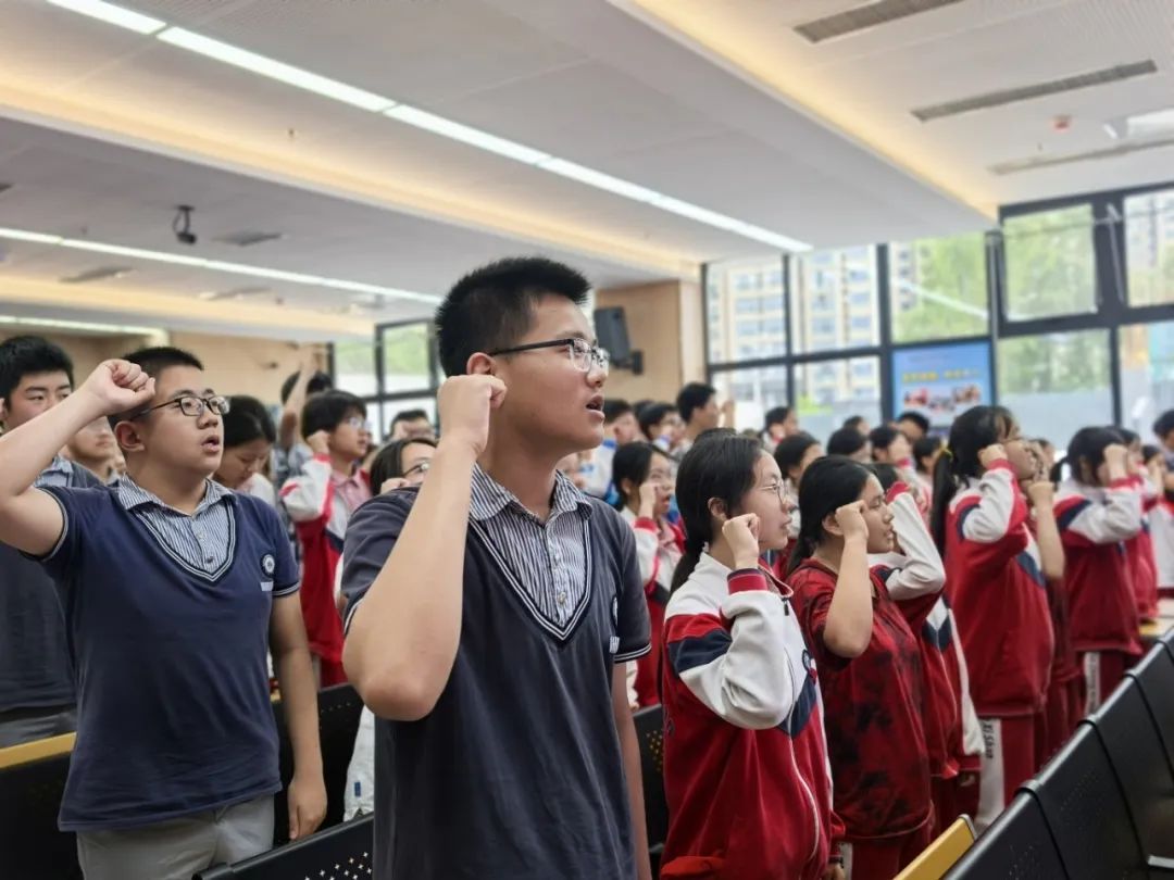 “面对困难,我们勇于向前!面对挑战,我们毫不畏惧!”在领誓人池紫颜的带领下,全体同学以青春名义庄严宣誓,铮铮誓言化作逐梦的动力。