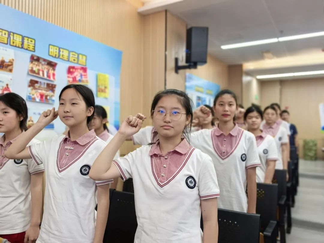 在王雅卿老师的带领下,新团员们举起右拳庄严宣誓:“我志愿加入中国共产主义青年团......”嘹亮的誓言回荡在会场,新团员代表朱家霈在发言时表示:“入团不是终点,而是肩负责任的新起点。”