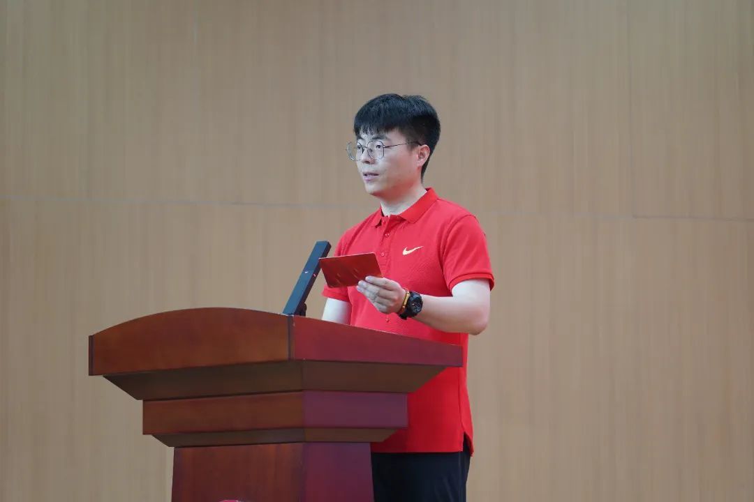最后,在激昂的背景音乐中,南京秦淮外国语学校党总支书记、董事长王正勇将校旗授予学生代表并发出征令:“2025年中考号角已经吹响,让我们向着胜利出发!”