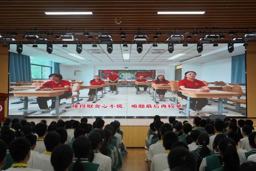 随后,语文、数学等七大学科组长依次登台,用精炼的语言为学子们送上学科应试“面授机宜”。