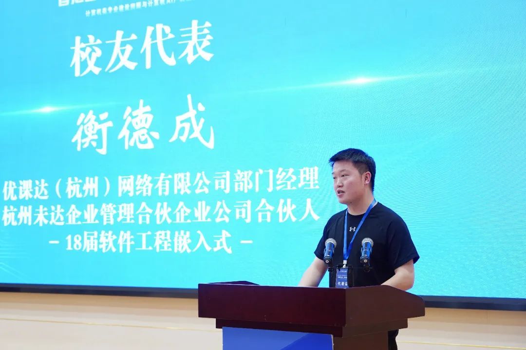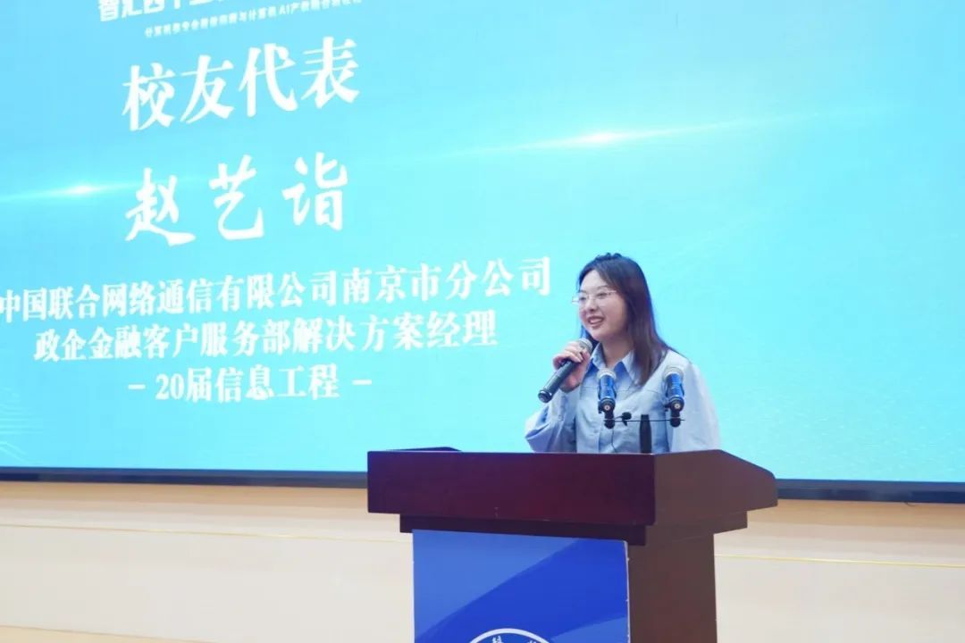 杰出校友代表回顾了在金陵科技学院的求学经历与心得,感恩母校为其奠定的坚实专业基础,激励在场学子在各自的专业领域深耕细作,夯实本领根基。