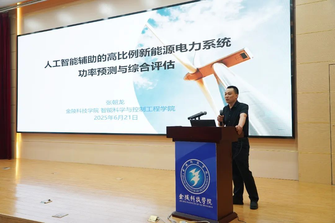金陵科技学院智能科学与控制工程学院教授、硕士生导师张朝龙聚焦 “人工智能辅助的高比例新能源电力系统功率预测与综合评估”,阐释了AI技术融合多维度数据构建智能化模型的创新路径。