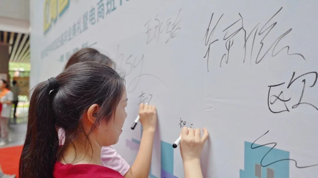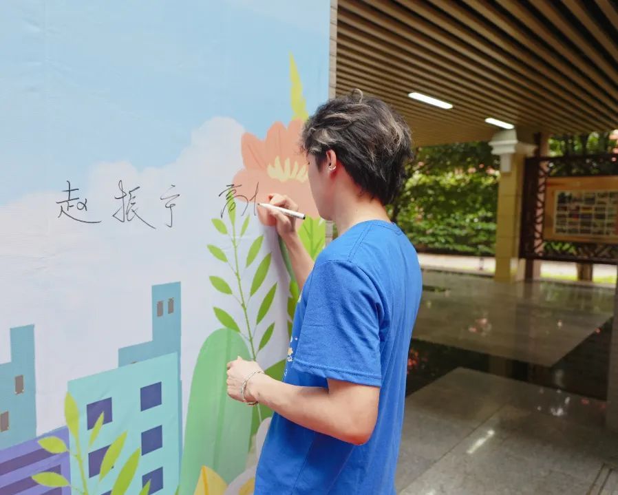 穿过拱门后,毕业生们在签名墙前驻足,签下自己的名字。签名墙上渐次绽放的姓名,正化作扬帆起航的船票,在六月的蝉鸣里驶向名为 "明天" 的海。