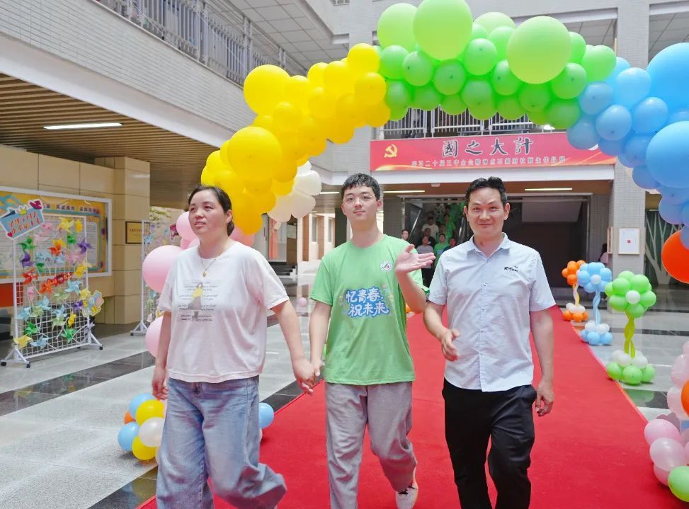 在家长温暖的陪伴下,毕业生们走过象征成长蜕变的彩虹门。