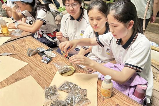 “包药包,计量称重”环节,则让同学们化身严谨的小药师。学习辨识常见中药材,亲手体验戥秤的精准使用,将份量恰当的药材仔细包入纸囊。一丝不苟的操作里,是对传统中医药“精诚”精神的直观体悟,更是对先人智慧的无声致敬。