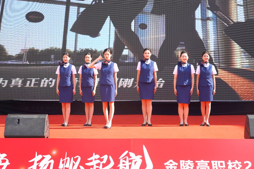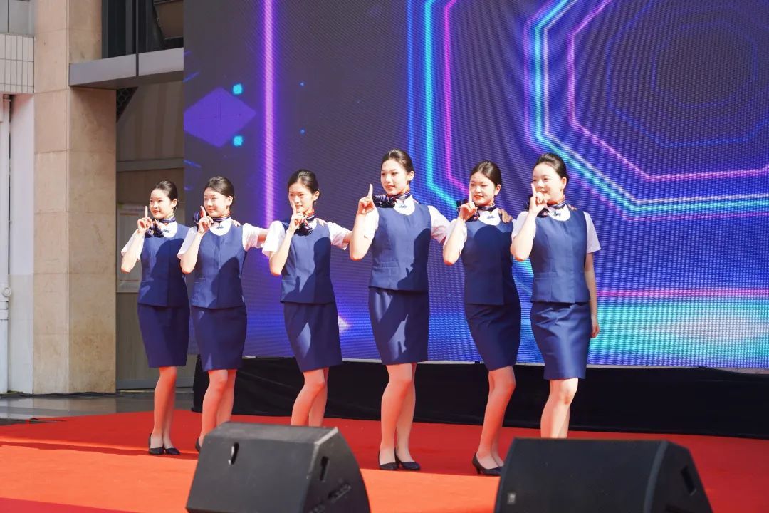知识与技能并重,理论与实践交融活动。专业技能展示环节,各系部学子以精湛技艺展现了金高职独特的育人成果与青春风采。旅游营养系带来表演《乐享云端》,将客舱服务与舞蹈完美融合,新的人生航班即将启航,祝福所有毕业生们前程似锦、晴空万里。