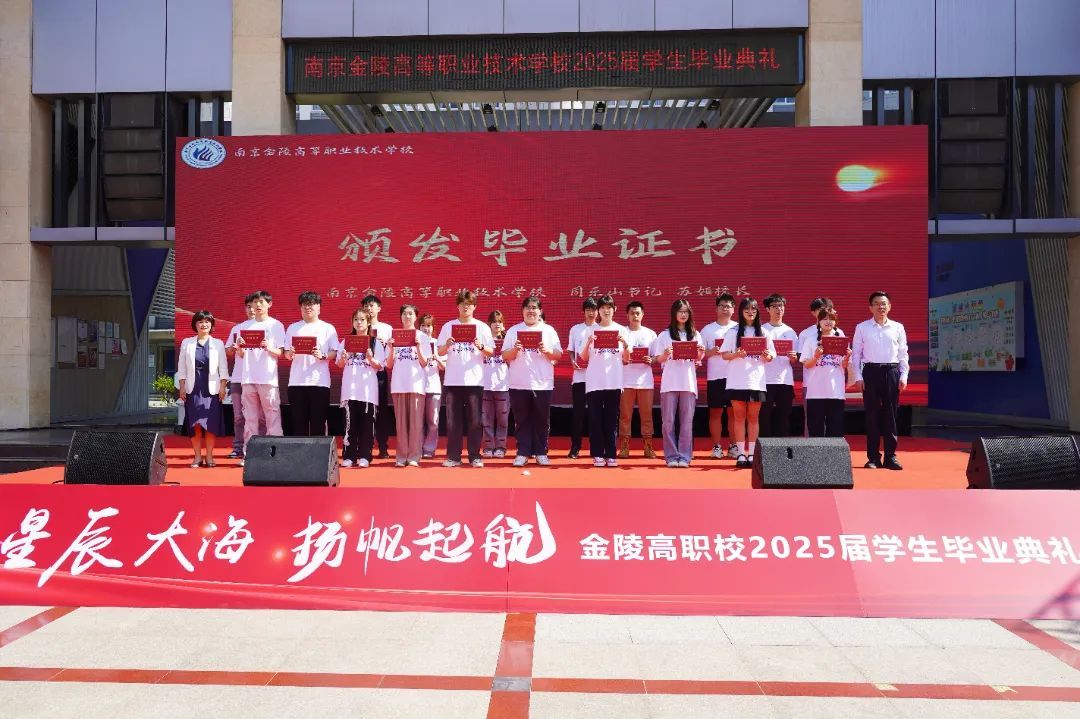 南京金陵高等职业技术学校党委书记周乐山、校长苏娅为2025届毕业生颁发毕业证书,这不仅是学业完成的凭证,更是青春奋斗的勋章。