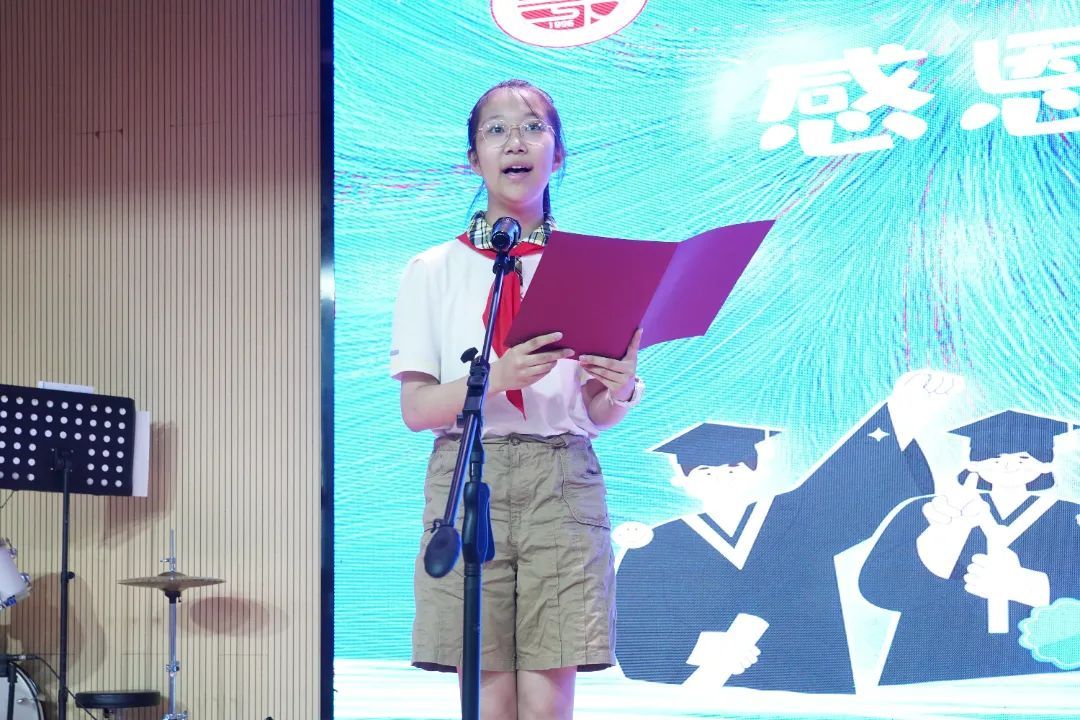学生代表六(1)班李安然深情回顾了在秦外的六年时光,从明亮教室、翻旧课本到走廊奔跑的身影,那些平凡日常已化作珍贵的成长印记,字里行间满是对母校温暖培育的感恩、对老师专业引领与耐心陪伴的谢意,以及对父母无条件支持的感激。展望初中生活时,她激励同学们携秦外养成的良好习惯与求知态度,铭记师恩、珍惜友谊,将毕业视为新起点,以秦外学子的骄人风采追梦前行。