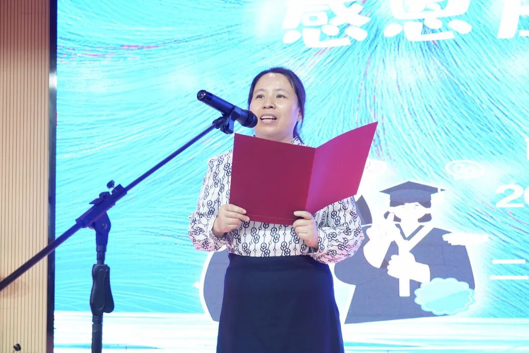 教师代表龚再芳上台发言,她以哲思般的寄语启迪学子:毕业是求索新程的肇始,当以永不停歇的求知热忱探索未知,以坚韧不拔的意志跨越荆棘,用真诚包容之心善待世间,凭感恩担当之责反哺社会。龚老师还以母校为后盾的温情承诺,遥寄学子在初中岁月以笃学之姿勇攀高峰、于广阔天地绽放璀璨华光。