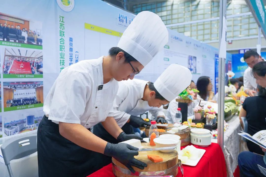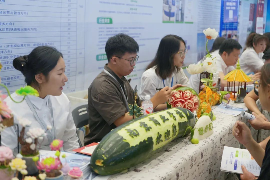 咨询会现场,烹饪专业学生带来的食品雕刻、创意摆盘等技能展示成为焦点,精湛的技艺引得众多家长、考生驻足观看,直观展现了学校“能行天下”的办学理念和扎实的教学成果。