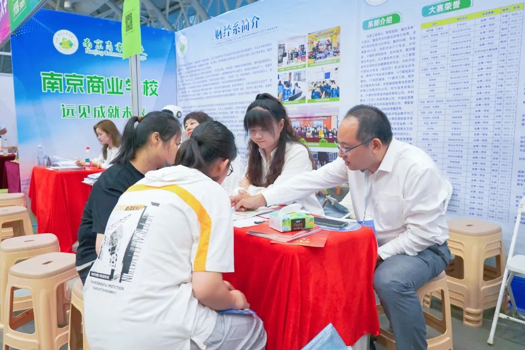 直击2025年南京市中招会现场!南京商业学校展台人气爆棚,升学就业双通道引关注