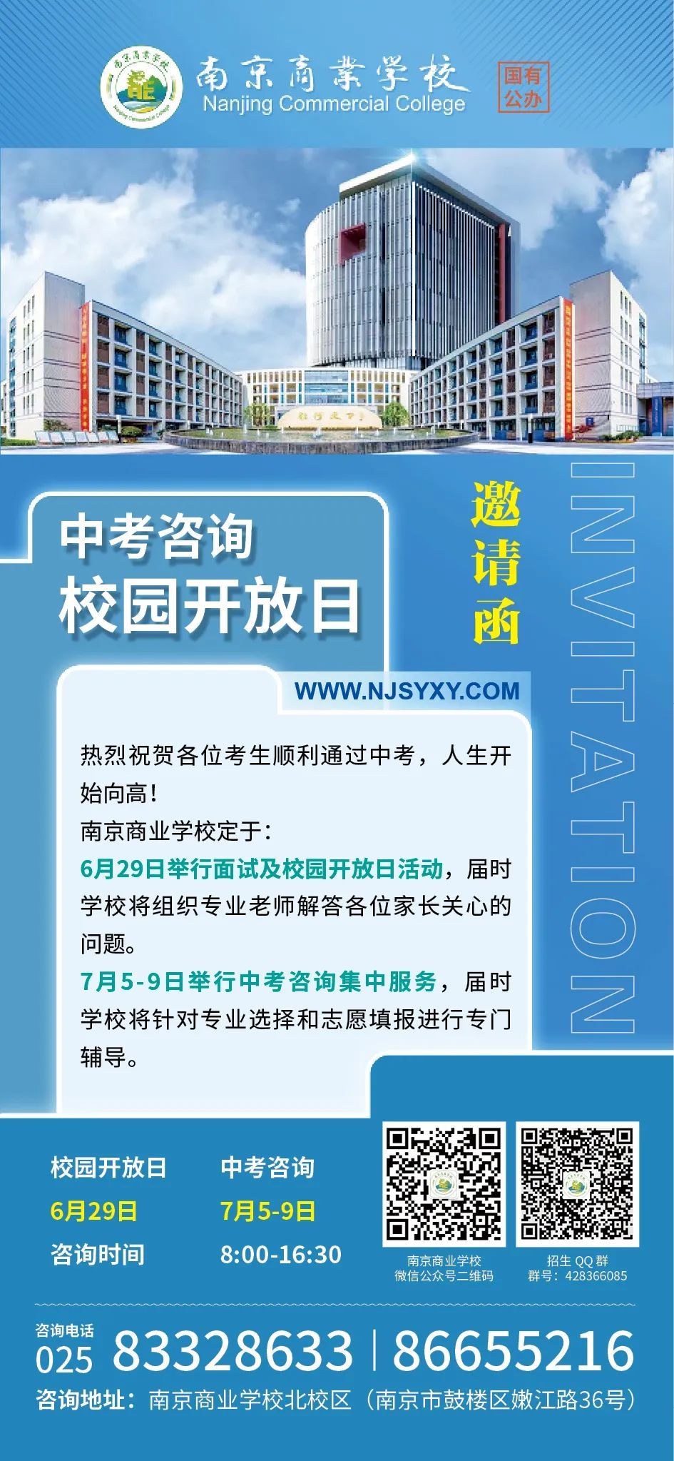 为帮助广大考生及家长更全面、深入地了解学校办学特色、人才培养模式及专业优势,南京商业学校将于6月29日举办中考咨询校园开放日活动。