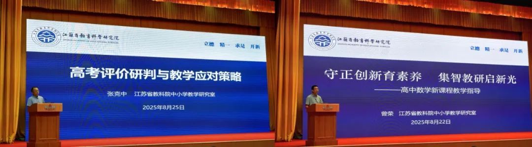 为深入贯彻全国、全省教育大会精神,积极推进教育强国、强省建设,认真落实基础教育综合改革试点工作,全面提高我省普通高中特色多样发展水平,8月20日至22日,聚焦“深化基础教育综合改革,促进普通高中优质特色发展”主题,省教育厅主办、省教科院承办的2025年全省普通高中书记校长暑期学习培训在南京顺利举行。省教育厅厅长、省委教育工委书记江涌作主旨报告,教育部基教司高中教育处一级调研员曾阳作辅导报告,南京市副市长孙百军致欢迎辞,省教育厅副厅长吴昊主持会议并讲话。省教育考试院院长、党委书记傅祝余,省教科院院长、党委书记陆岳新,省教育评估院院长周明和北京师范大学教授、博士生导师李玉顺作专题报告,省教科院高中语文、数学、物理、历史等学科教研员作教学指导报告。省教育厅有关处室(单位)负责同志,各设区市教育局分管负责同志、基教(中教)处和教科院(教研室)负责人以及普通高中学校书记校长代表共计280多人参加培训。