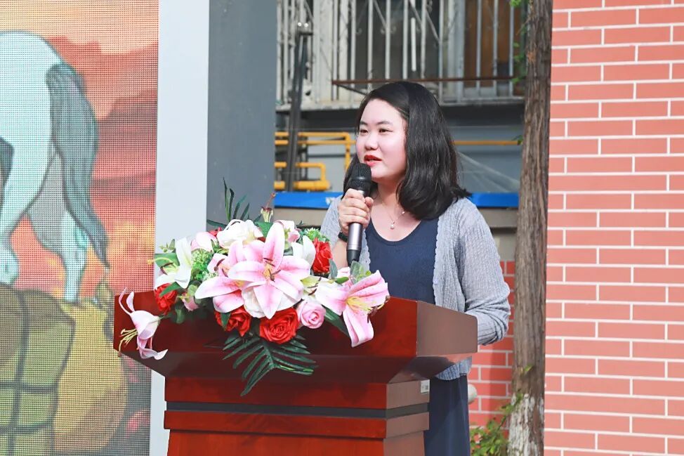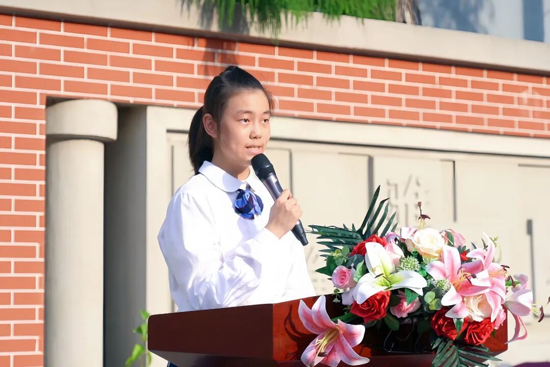 学生代表初三(7)班陈欣怡分享了自己的感悟,勉励同学们秉持“尊道益智,日有所进”的校训精神,脚踏实地、砥砺前行,书写自己的青春篇章。