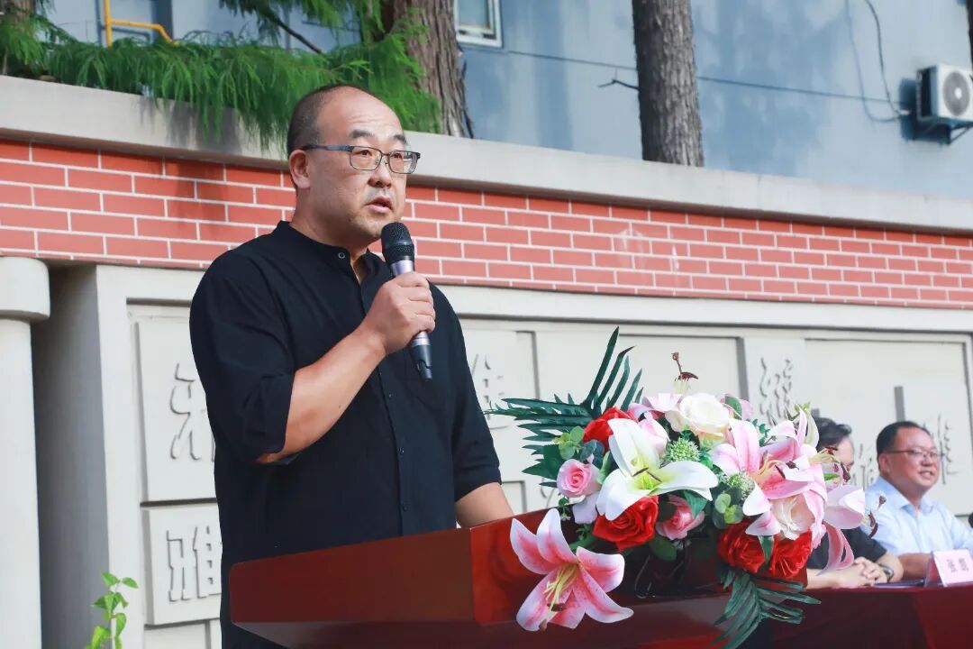初三年级部主任温乐作为教师代表发言,针对各年级同学提出勉励与建议。他表示全体教师已做好准备,将精心备课、上课和辅导,以“理解与陪伴”助力学生成长。