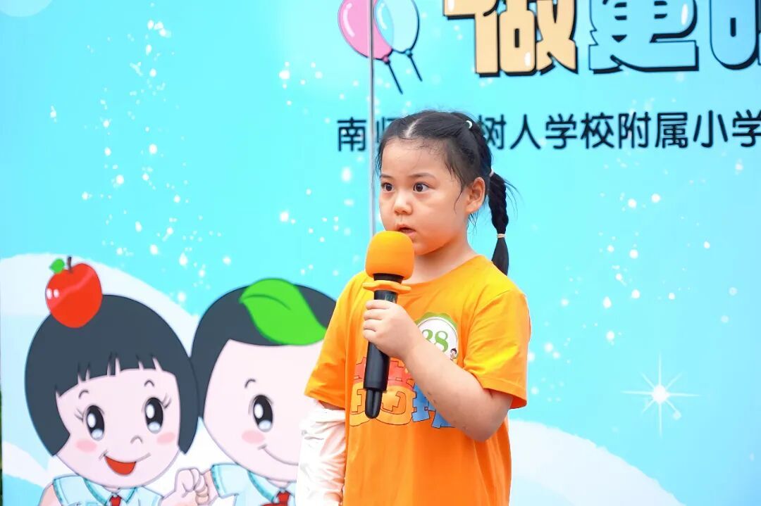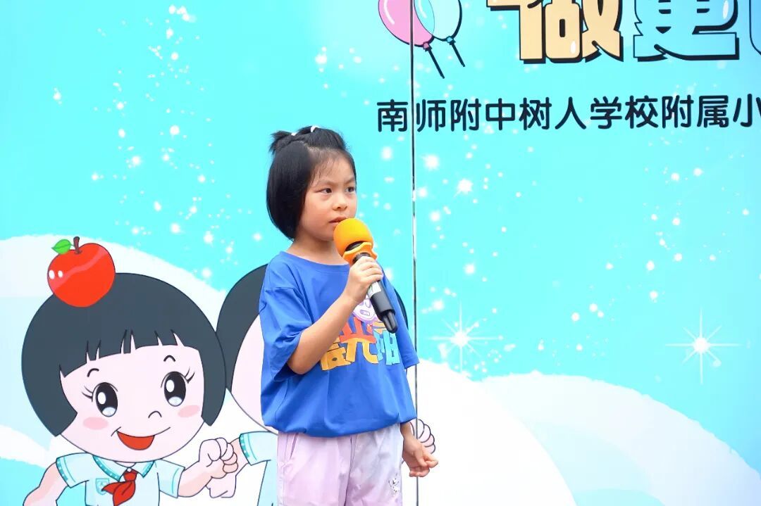 南师附中树人学校附属小学党总支书记陈桥蓉为同学们讲述了“小种子的旅行”故事,希望同学们像小种子一样面对困难时永不放弃、相信自己,寻找生命向上的力量。结合纪念中国人民抗日战争暨世界反法西斯战争胜利80周年背景,陈书记还为同学们讲述了 “海娃送鸡毛信” 的故事,勉励师生牢记历史、珍爱和平,为祖国强国梦、复兴梦努力奋斗。最后,陈书记向全体师生送上新学期祝福,希望大家在校园中享受成长、热爱生活,迈向更幸福的未来。