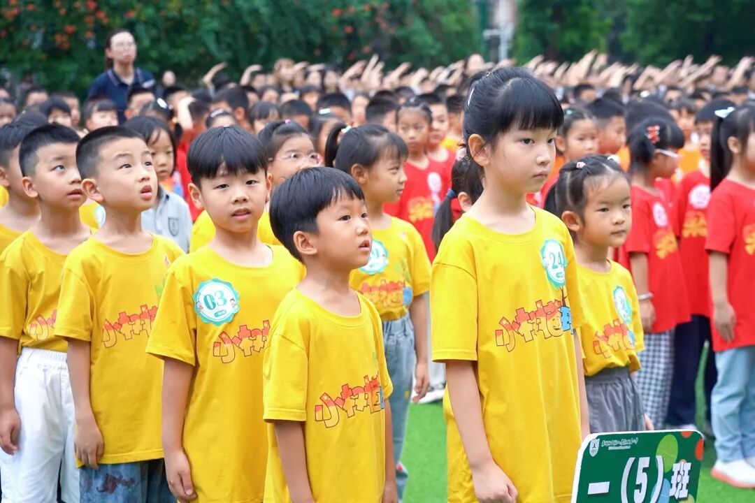 一年级的同学们在老师带领下列队整齐,精神饱满地前往操场参加开学典礼,各班学生代表鼓足勇气走上台,面对敬爱的师长与友善的学长学姐,清晰地介绍自己,还大方分享了藏在心里的爱好与对未来的小小理想,稚嫩的声音里满是朝气。