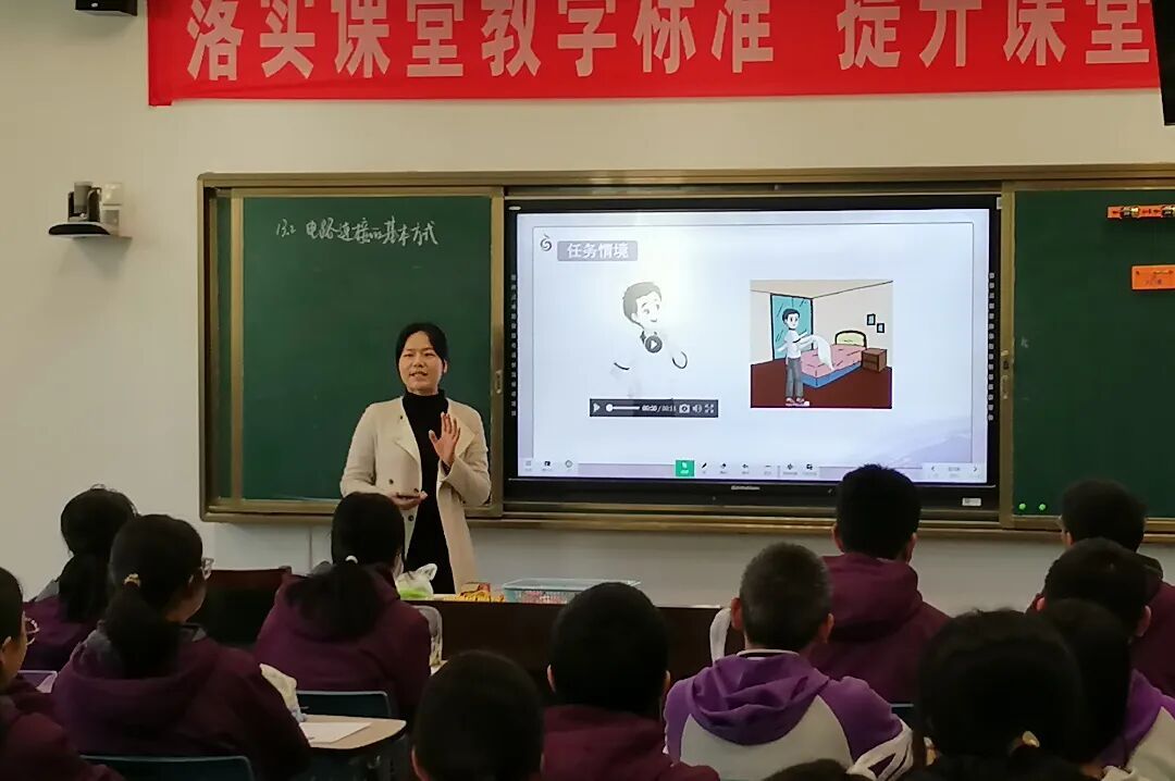 本次专题活动的课题为《电路连接的基本方式》,来自建邺区物理专家朱璐和高淳区第二中学朱起凤两位教师进行了课堂教学展示。两位老师都能吃透《课标》要求,灵活驾驭课堂。其中朱起凤老师以电影《拆弹专家》片段创设悬念,激发学生的好奇心和求知欲,并在课堂中以任务串的形式设置了三个任务,让学生思考动手合作交流,收到了良好的效果。朱璐老师则以AI的形式引入课题,情境创设新颖,激发了学生极大的兴趣,并在课堂中以问题串的形式进行,教学环节环环相扣,循序渐进。整个教学过程轻松愉快,一气呵成,学生在“做中学、乐中学”,目标达成度高。