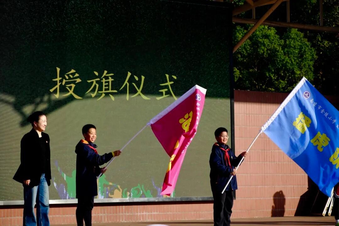授旗仪式上,校领导依次为各参赛代表队授旗,一面面队旗象征着荣誉与拼搏,激励着每一位队员在赛场上奋勇争先。