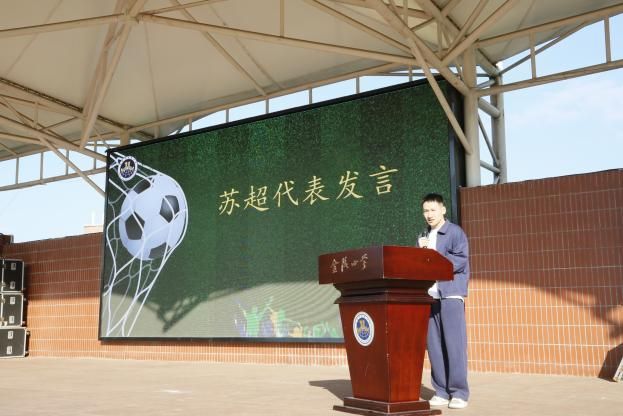 苏超球员代表杨笑天及运动员代表宗源同学进行发言,分享了足球心得与体育精神,激发了同学们对比赛的期待和热情。