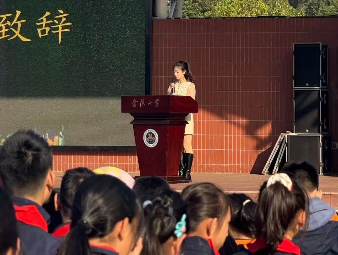 入场仪式后,金陵小学党委书记李玮为开幕式致辞,她表示:“同学们,作为我校首届班级内部足球联赛的参与者,你们是校园足球的开拓者,更是足球精神的传承人。希望大家珍惜这次难得的机会,带着弘德足球俱乐部的专业积淀,循着苏超联赛运动员们的足迹,在赛场上坚守规则、尊重裁判、友爱对手,把每一次奔跑、每一次传球、每一次射门都变成对自我的挑战、对团队的担当。无论胜负,重要全力以赴,你们就会收获成长、收获友谊,更会懂得足球背后‘永不言弃’的精神密码。”她指示本次联赛“以球育德、以球健体、以球促学”的内涵,鼓励同学们在比赛中展现自我,超越自我。