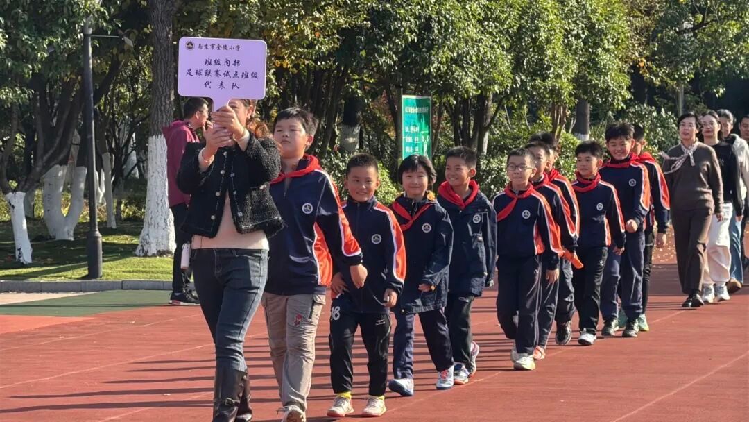 今天金陵小学第一届班级足球内部联赛正式拉开热血帷幕,苏超球员哥哥们居然来现场了,还教我们射门技巧,太酷了!和同学一起在场上奔跑,传球、防守,每一秒都超热血。虽然累得满头大汗,但为了班级拼尽全力的感觉超棒!原来“小足球 大教育”就是这样,不管输赢,我们都是超棒的自己!