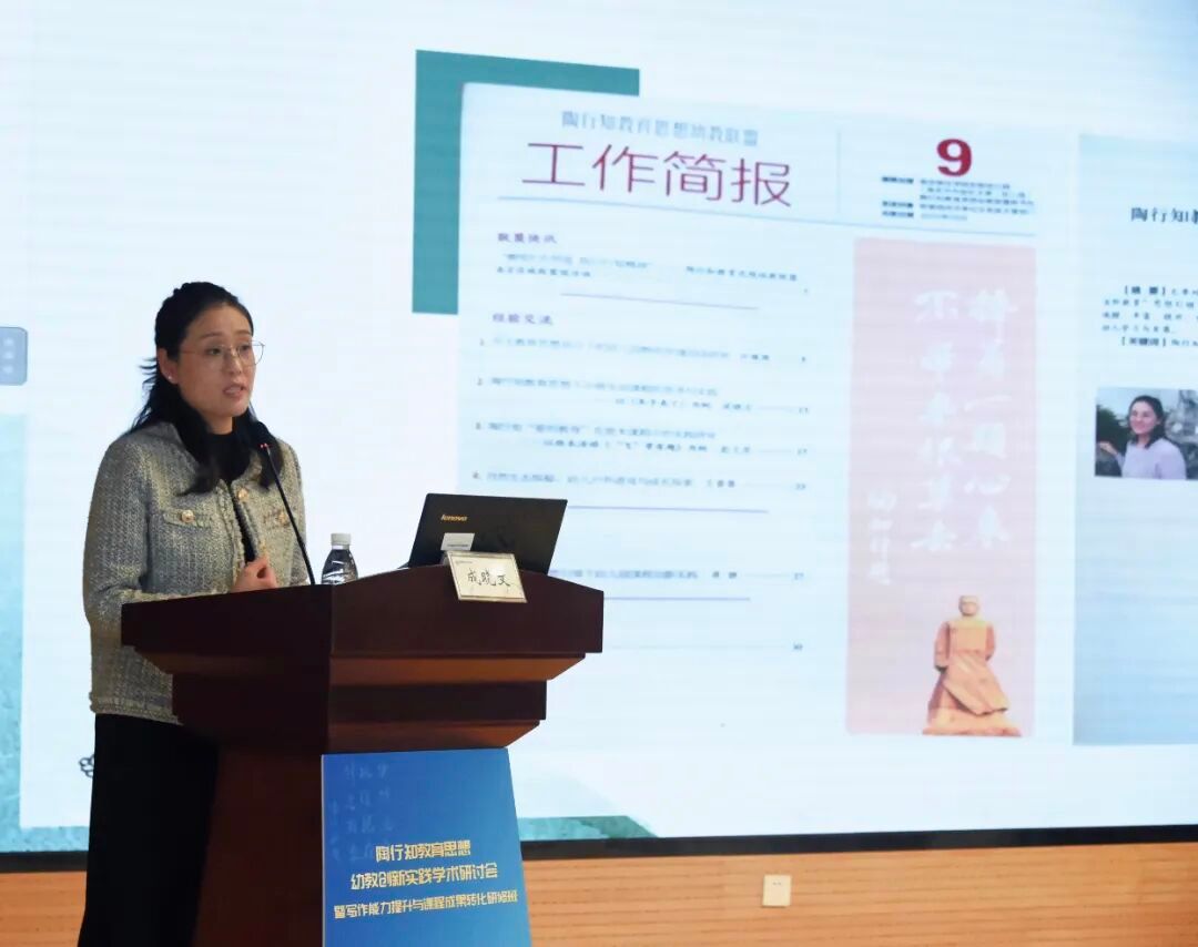 南京市陶行知思想研究会副会长兼秘书长祁海燕鼓励联盟成员单位将践行陶行知教育思想的实践感悟转化为可推广的成果,用写作赋能专业成长,让陶行知教育思想在每一所幼儿园里生动再现。