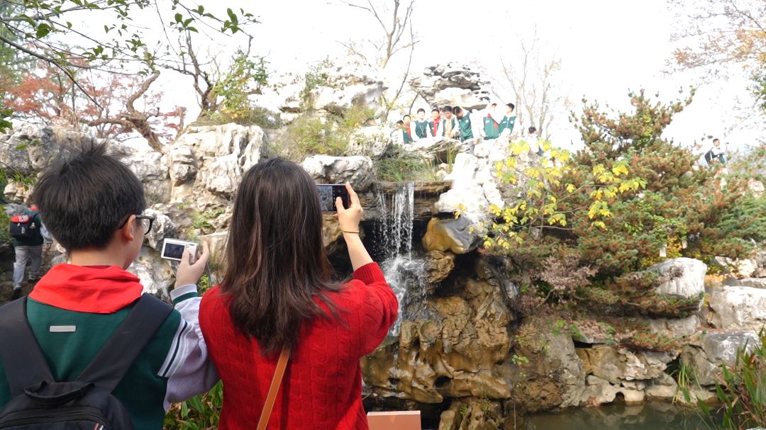 同学们或驻足细观建筑细节,或用镜头记录园林特色,或轻声交流所见所感,在实景中品味江苏园林的独特魅力。