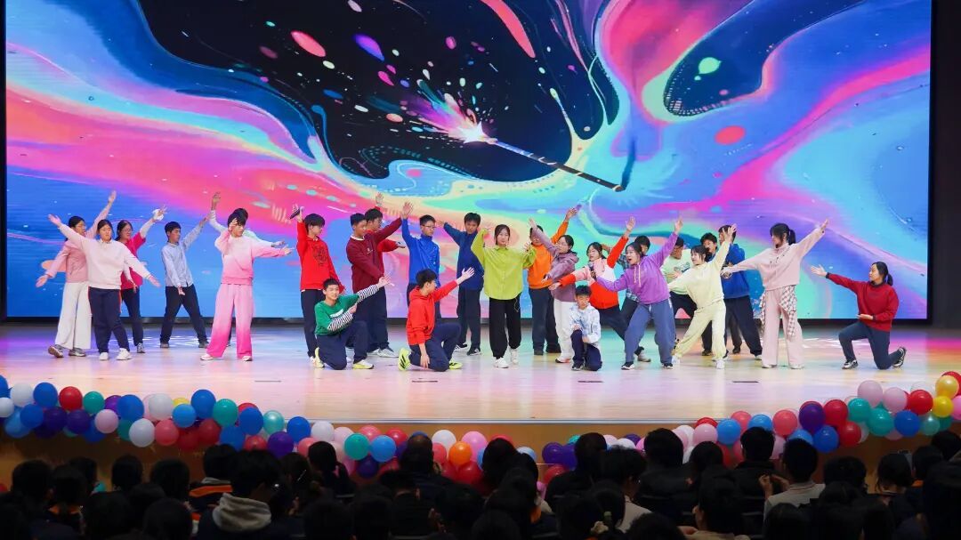 本次汇演以“乐声筑梦,艺揽星河”为主题,舞台之上,少年意气与艺术才情碰撞出别样火花:动感歌舞燃动全场,古典雅韵浸润心灵,情景剧传递深刻内涵,时装秀展现东方美学……同学们既是追光而行的逐梦者,亦是匠心筑梦的创作者,他们以翩跹舞步奏响梦想序曲,以悠扬乐声采撷星河光芒,在方寸舞台间构建出充满诗意与想象的艺术宇宙。