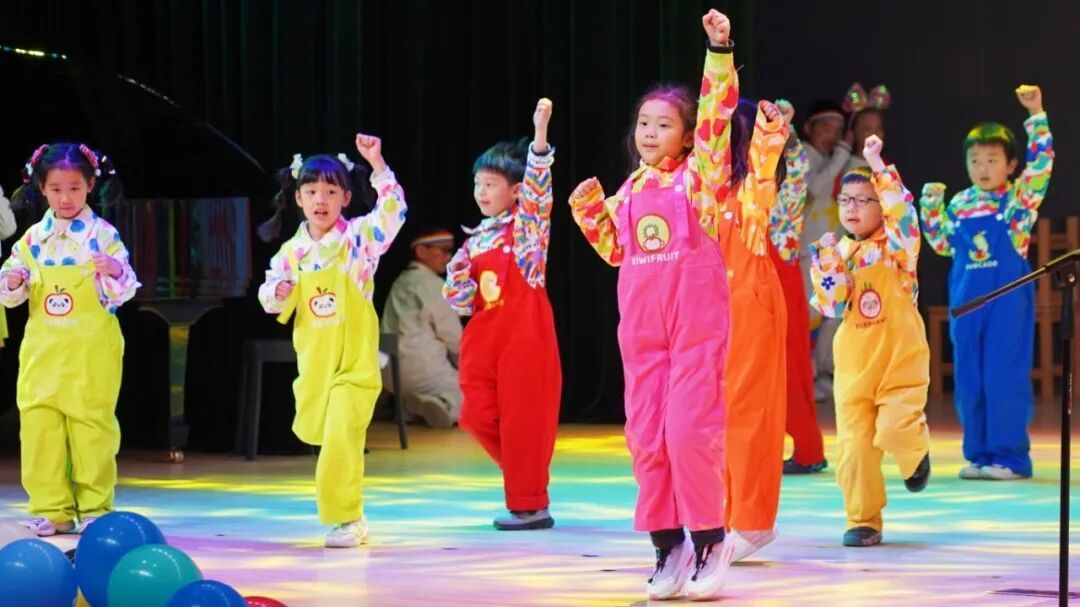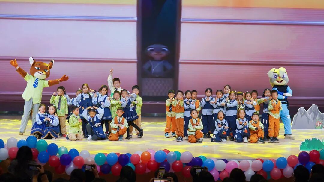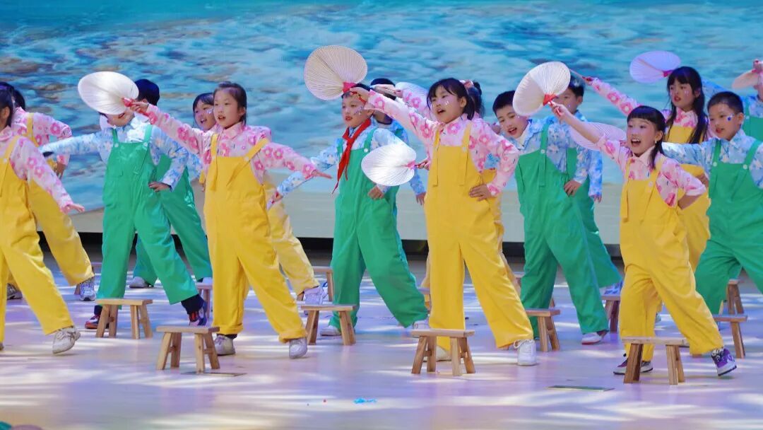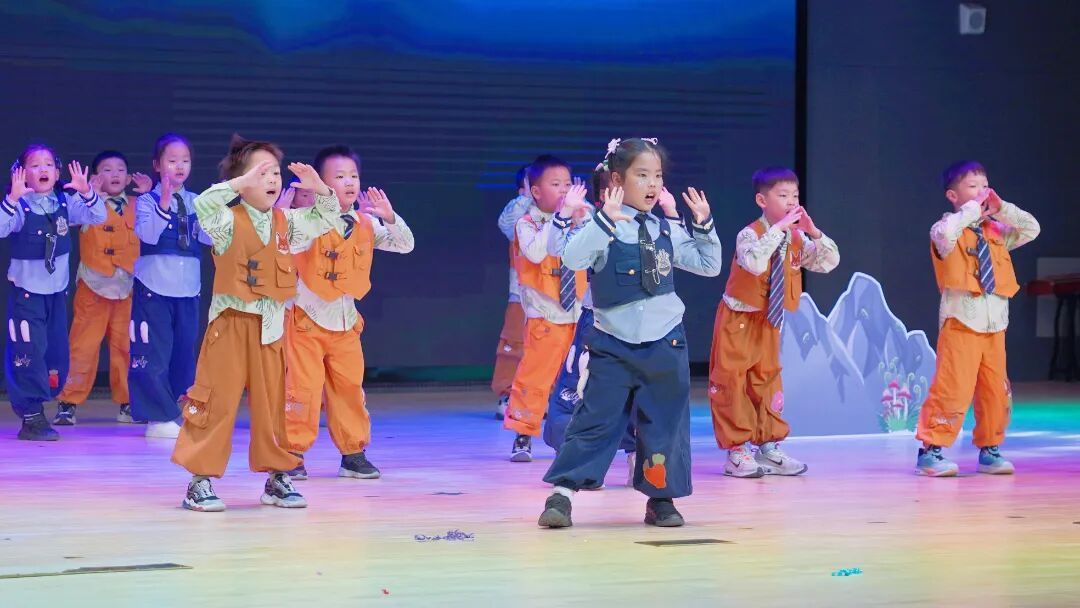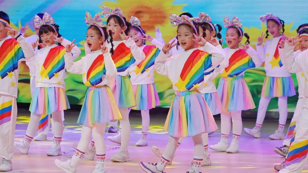 活力与动感交织,一系列精彩的唱跳节目动感来袭,如同一场青春的集体告白!《开心往前飞》以明快的节奏与灿烂笑容,将欢乐传递给全场的每个角落;《把未来点亮》用清澈歌声与坚定手势,托起少年对明天的美好憧憬;一曲《外婆的澎湖湾》,裹挟着温暖旋律缓缓流淌,唤起所有人心底共同的童年记忆;《阳光男孩,阳光女孩》以灵动舞姿挥洒少年意气,欢声笑语间尽显无忧无虑的青春本色;《Try Everything》用充满力量的演唱与舞蹈,将永不言弃的精神力量注入每个人心中。