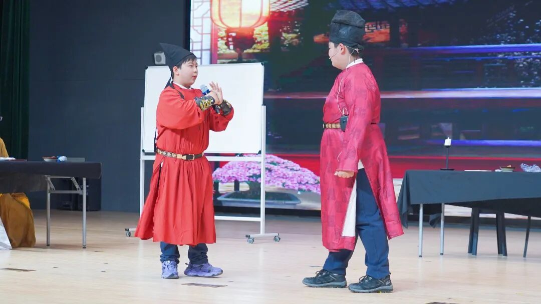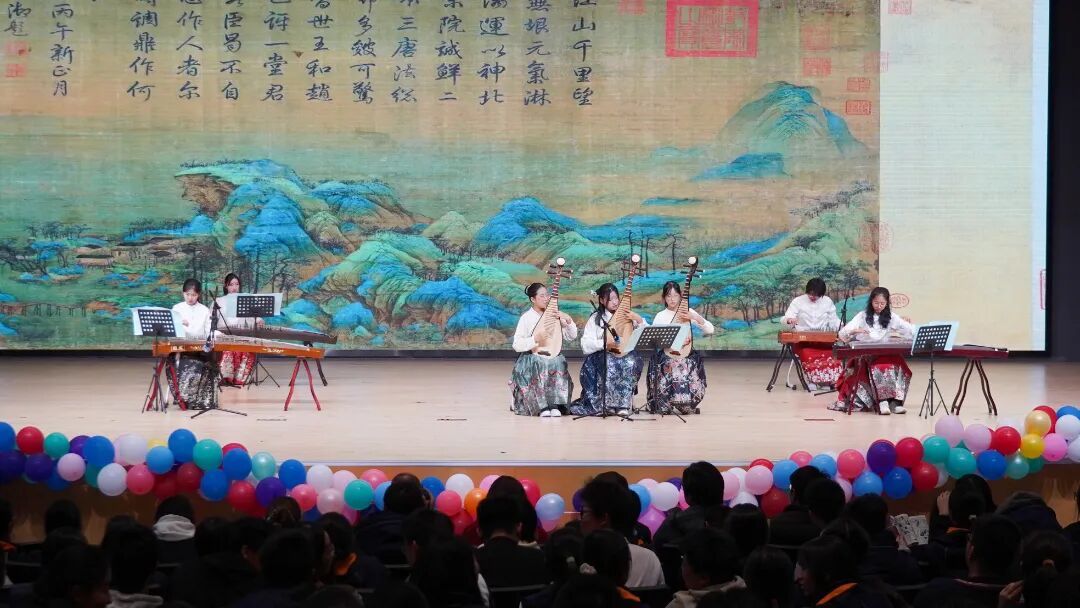 民乐与情景剧《六朝风骨》堪称一场浸润心灵的文化盛宴,或吟诗作赋、挥洒才情,或临窗远眺、心怀天下,同学们用深情的表演将金陵往昔的文人风雅娓娓道来。