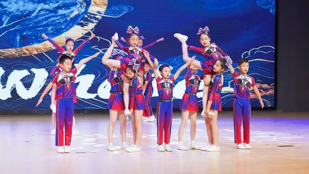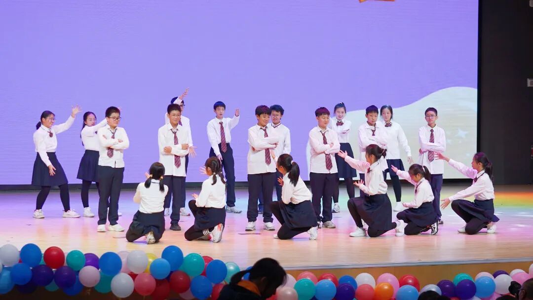 小学部的文艺汇演在活力四射的啦啦操表演中拉开序幕。蓝鲸啦啦队带来的《We Are Winners》,以精湛的技巧、饱满的激情瞬间点燃全场气氛,整齐划一的动作与灿烂自信的笑容,展现了少年儿童的蓬勃朝气。
