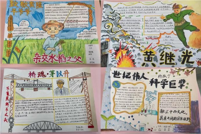 班级读书汇报会上,同学们踊跃分享绘制的中国先锋人物小报时,大家搜集钱学森、陆游、黄继光等先贤事迹,用文字与画笔展现先锋人物的爱国担当,班级内的小报展览成为一道亮眼的文化风景线。