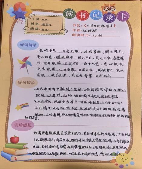 此外,在第11周周五,全体五年级学生参与了爱国主义人物阅读练习。练习围绕爱国主题设计,从“忧国忧民”等成语积累,到陆游、钱学森等人物故事阅读理解,再到精神感悟书写,串联起基础积累、阅读分析与表达运用等多个维度,有效检验了同学们的语文素养与爱国情感积淀。