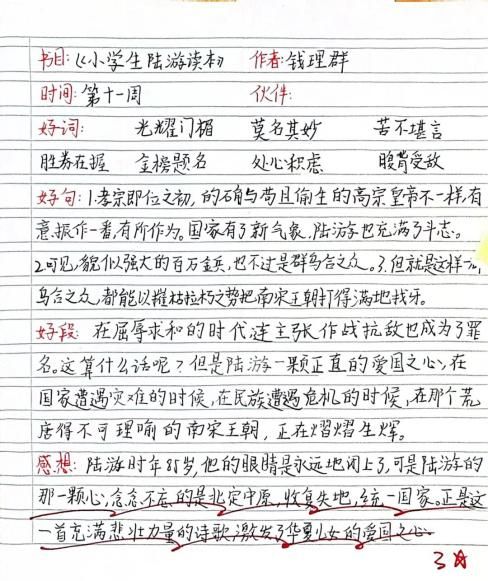 五年级各班于第8周启动相关活动,认真筹备竞赛。在为期三周的前期准备中,同学们积极参与各项实践任务。自主阅读《小学生陆游读本》时,大家认真撰写读书笔记,记录精彩语段与阅读感悟;