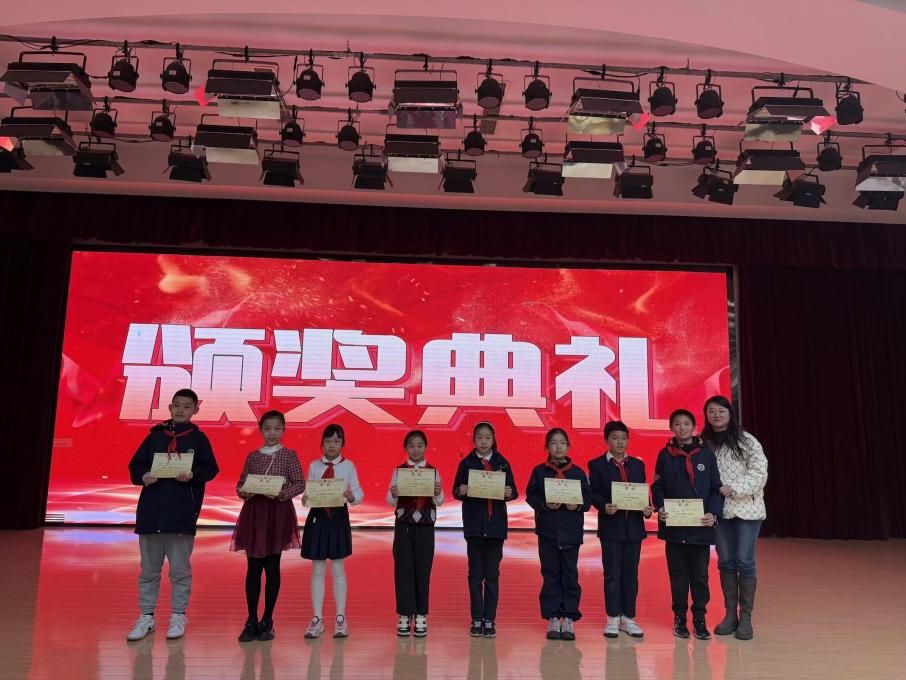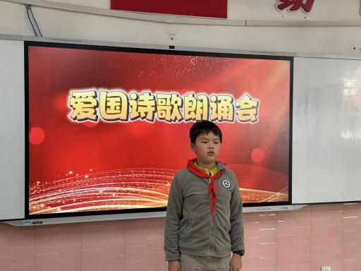 之后,来自各班级的参赛选手依次登台,同学们以抑扬顿挫的语调,真挚饱满的情感诵读爱国诗歌。《青春中国》的意气风发、《少年中国说》的深沉激昂,选手们用富有感染力的演绎,将对祖国的热爱与崇敬传递给在场每一位观众。评委团从诗歌理解、诵读流畅度、情感表达等方面进行专业评判,最终评选出“童心赞国小百灵”“童心颂华小传人”“童声咏国金话筒”“童真爱党小先锋”。颁奖环节中,王新校长为获奖选手颁发荣誉证书,并合影留念。
