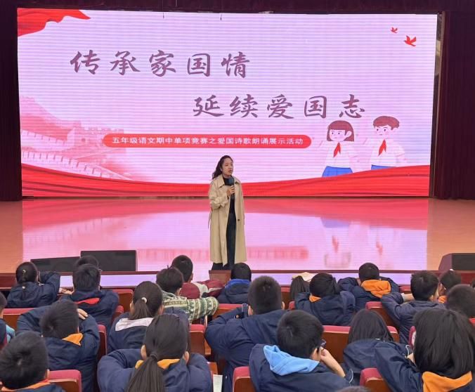 为厚植学生爱国情怀,传承红色基因,11月19日,金陵小学五年级语文组爱国主义主题期中单项竞赛在学校二楼报告厅圆满落幕。本次竞赛以“诵爱国华章,铸少年赤心”为主题,通过读书笔记分享、先锋人物小报绘制、爱国诗歌朗诵、主题阅读练习等系列活动,让学生在语文实践中感悟爱国内涵,展现新时代少年的家国情怀。